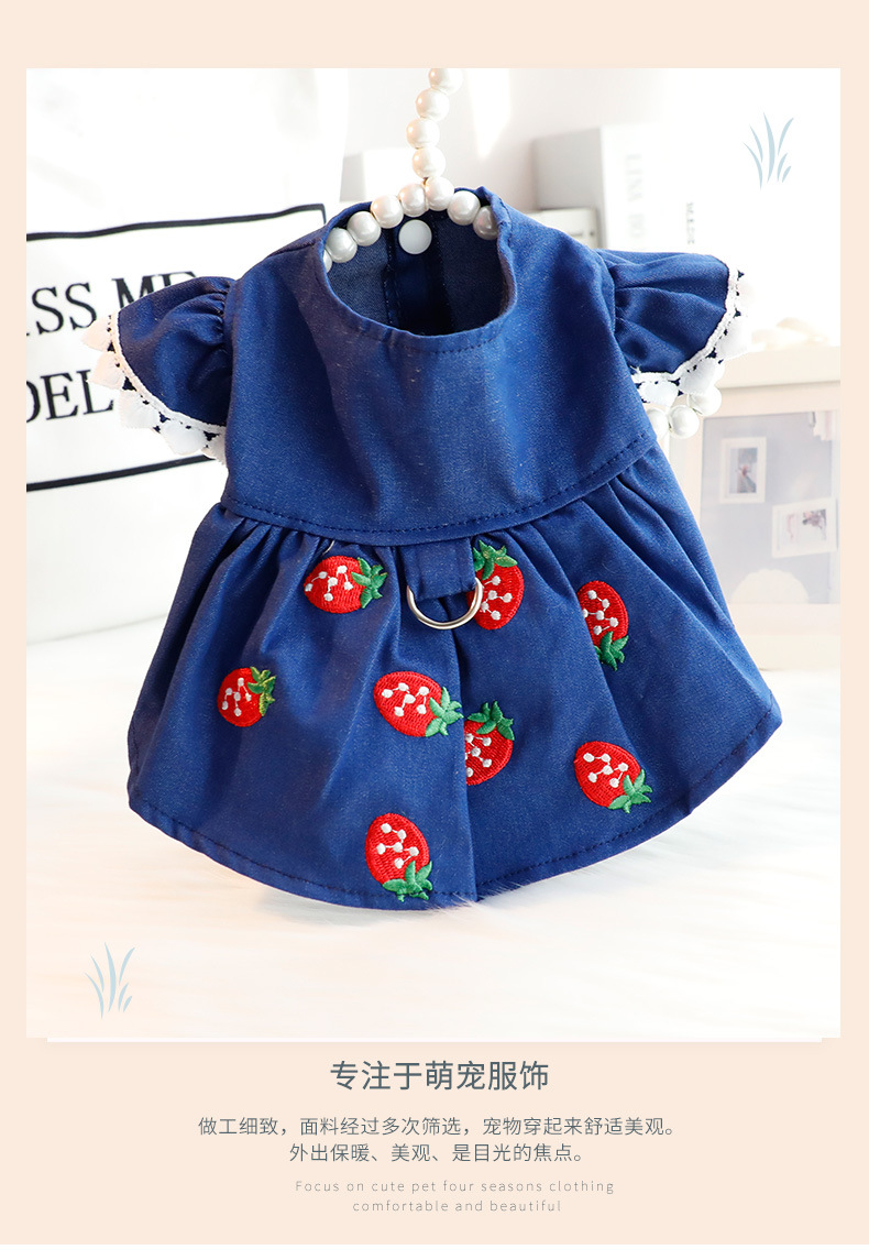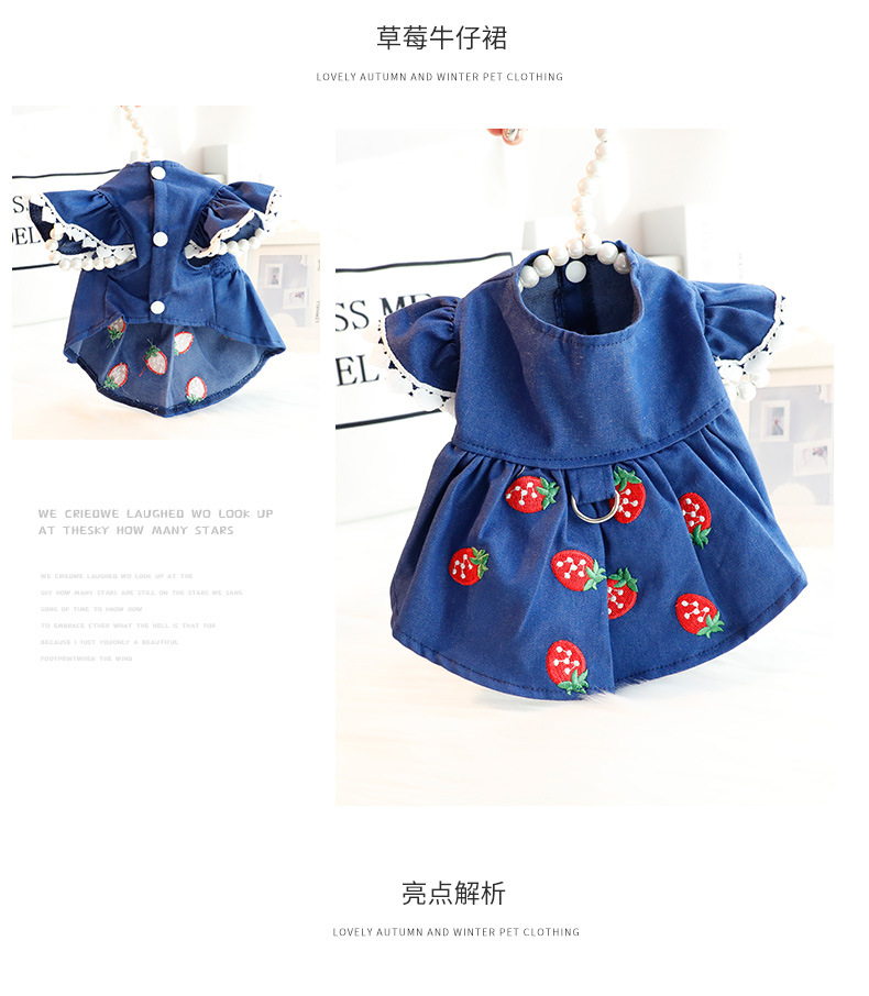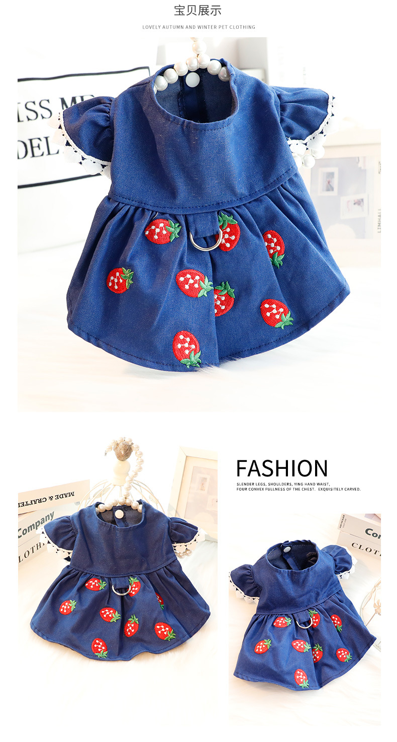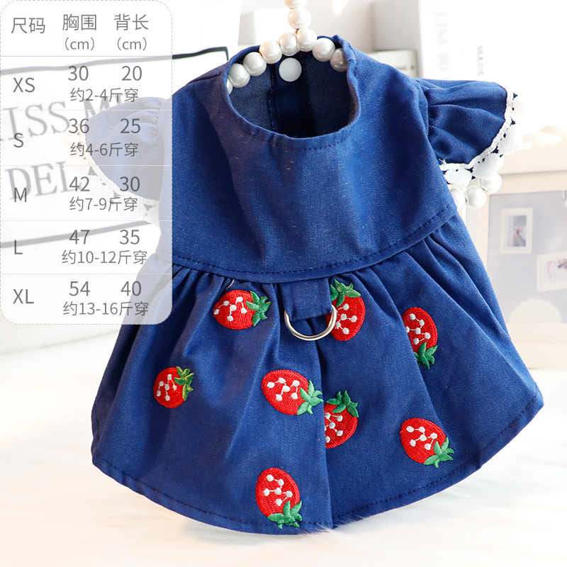 개 옷 봄 고양이 공주 데님 치마 귀여운 딸기 견인 작은 개 테디 베어 애완 동물 5498
