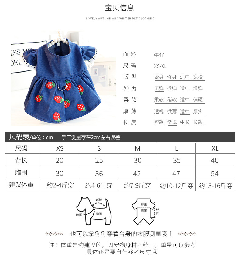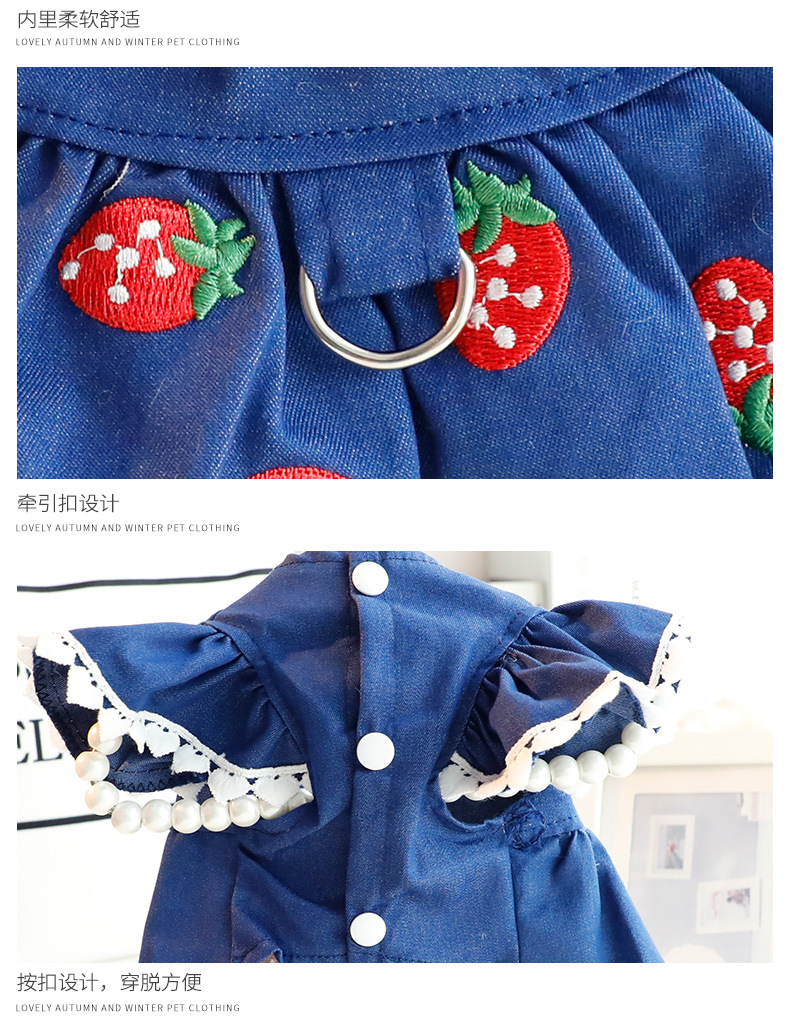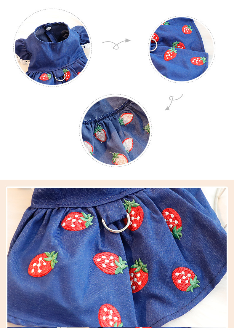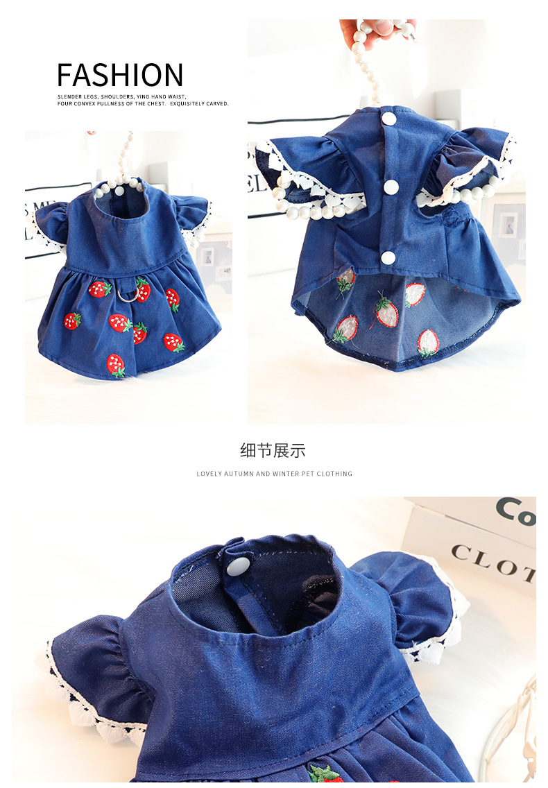 개 옷 봄 고양이 공주 데님 치마 귀여운 딸기 견인 작은 개 테디 베어 애완 동물 5498
