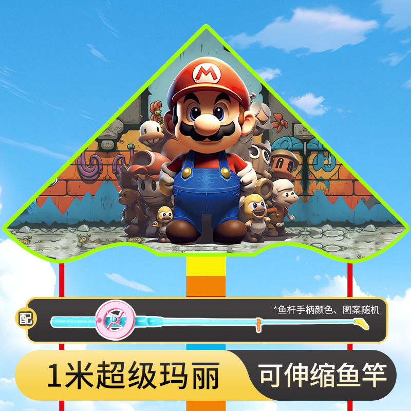 • 1m 슈퍼 마리오 연 + 줄이 달린 당근 텔레스코픽 낚싯대