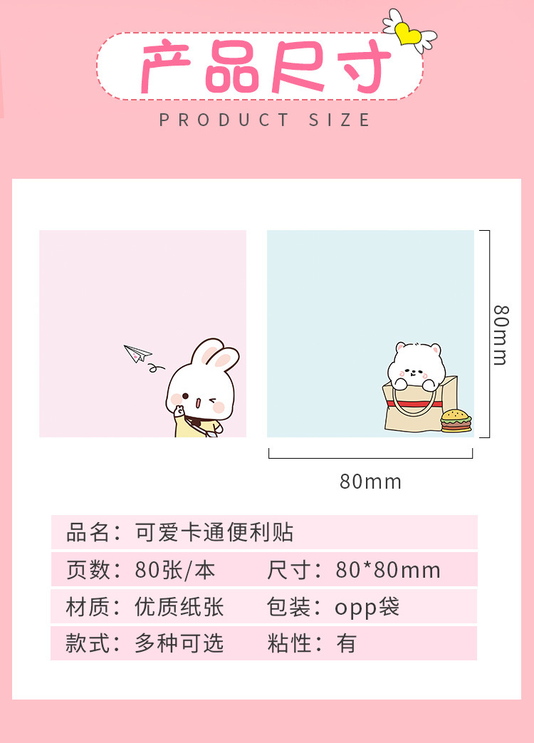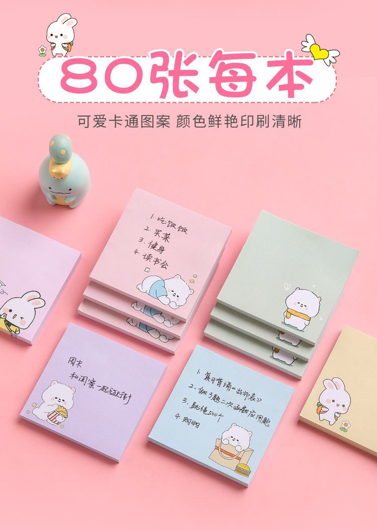 한국 인터넷 유명 인사 귀여운 만화 소녀 하트 노트 책 작은 노트북 스티커 메모 메모 스티커 메모 용지