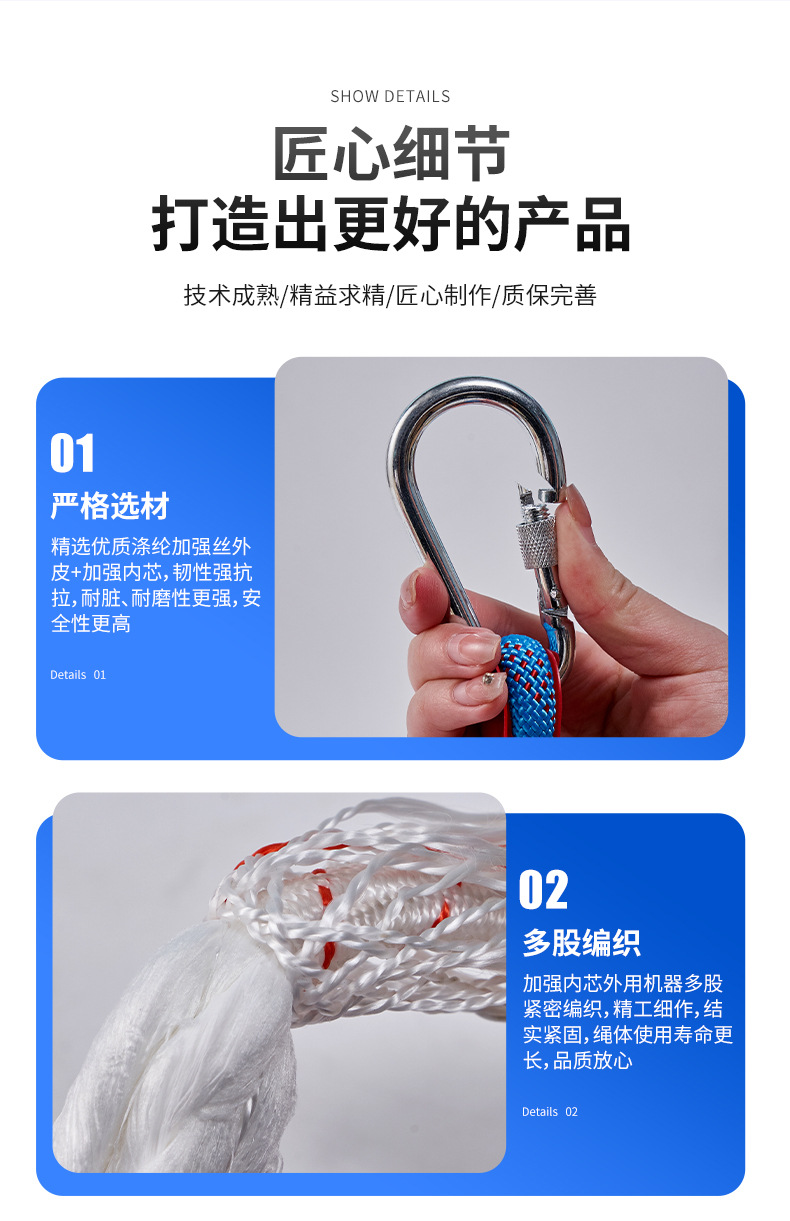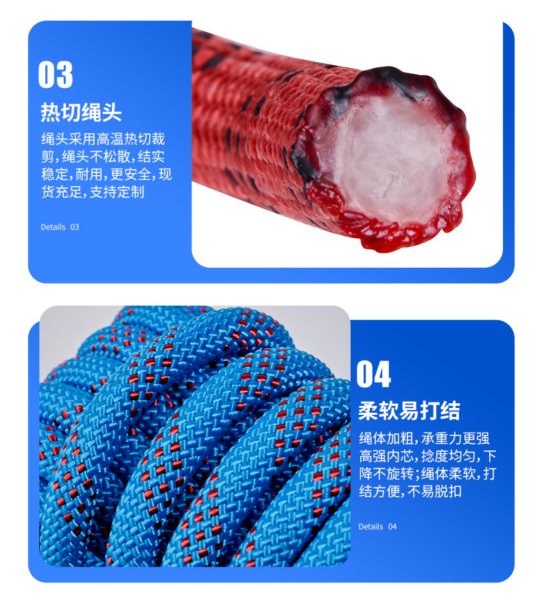 야외 등반 로프 구조 빠른 하강 정적 암벽 등반 로프 국가 표준 공중 작업 안전 로프스토어 가기