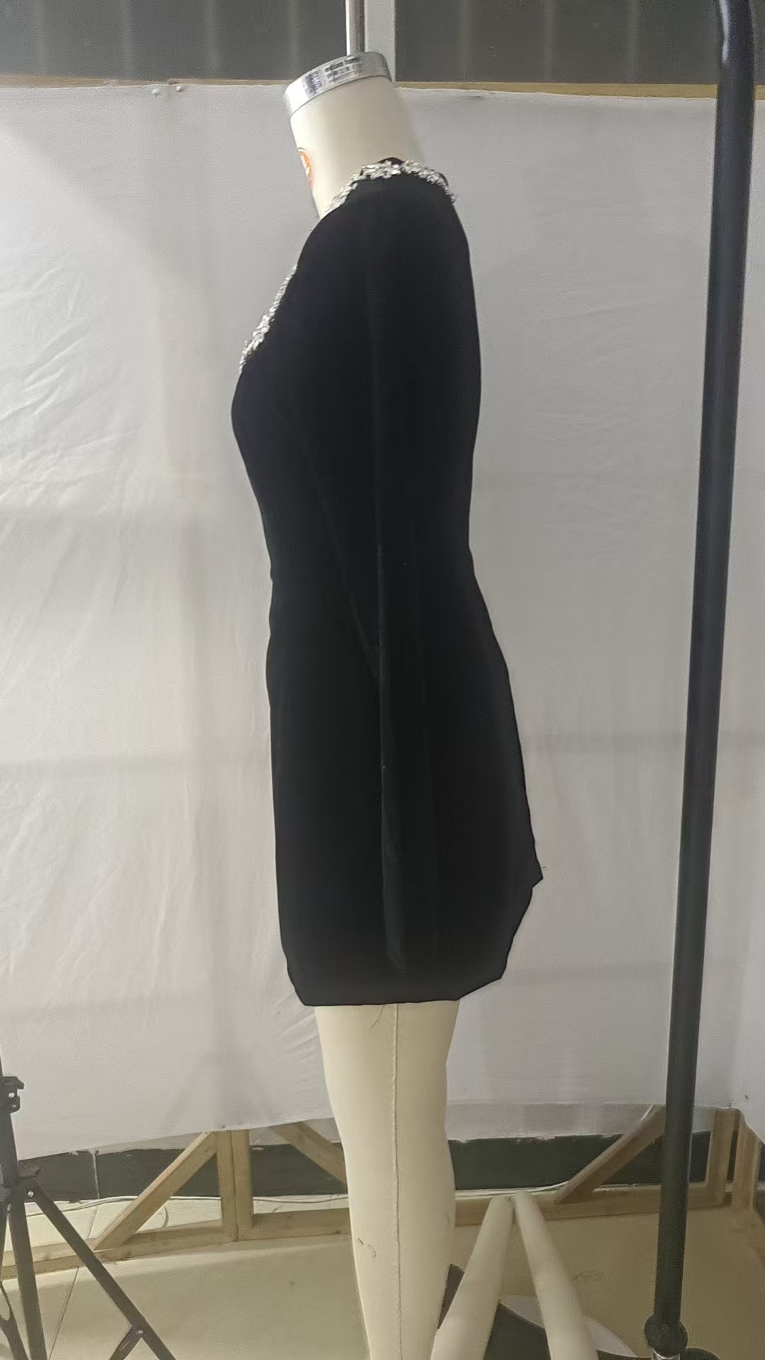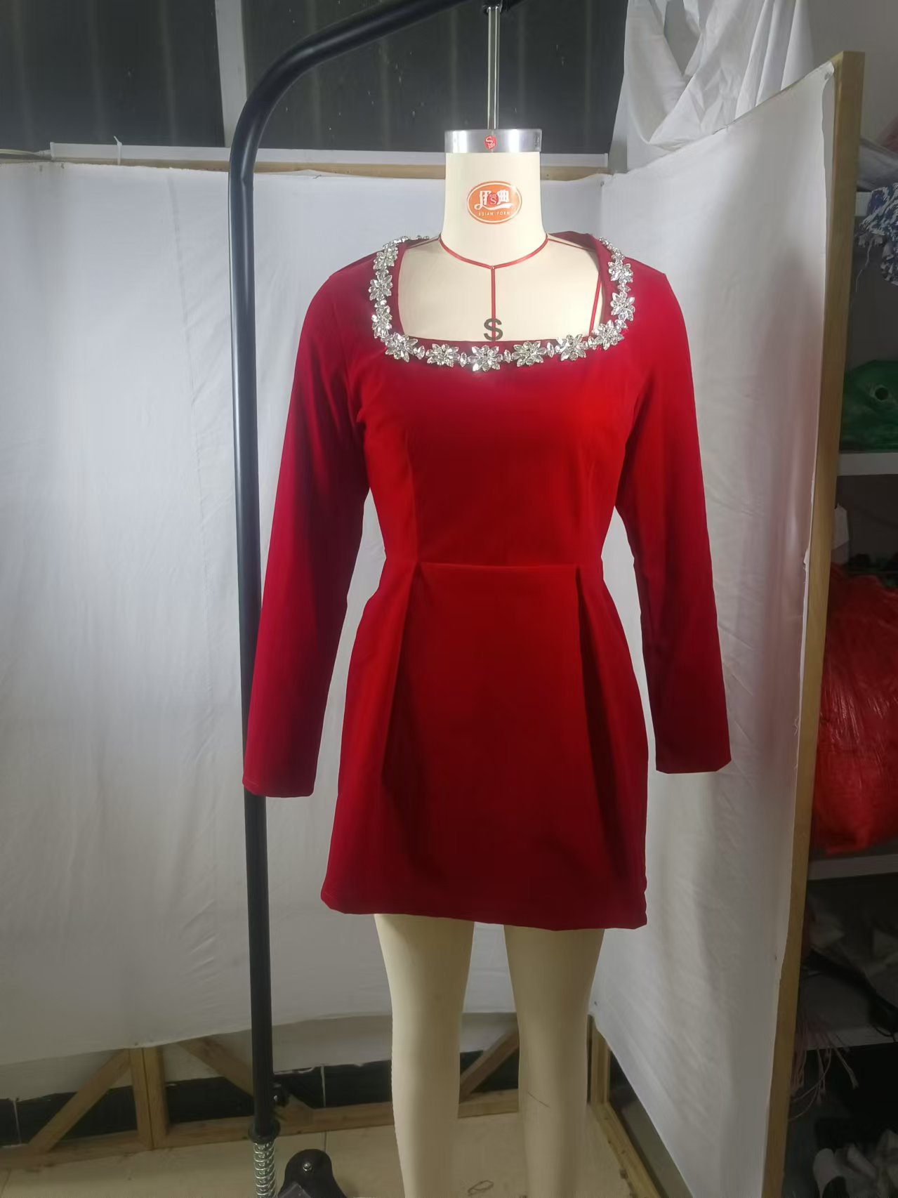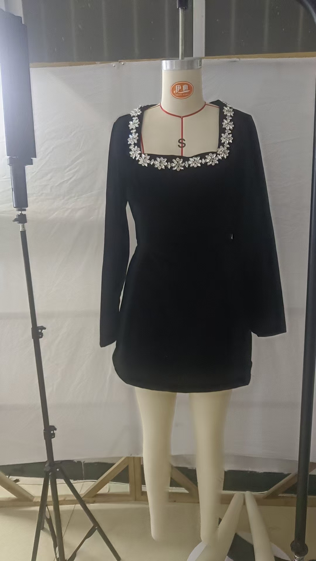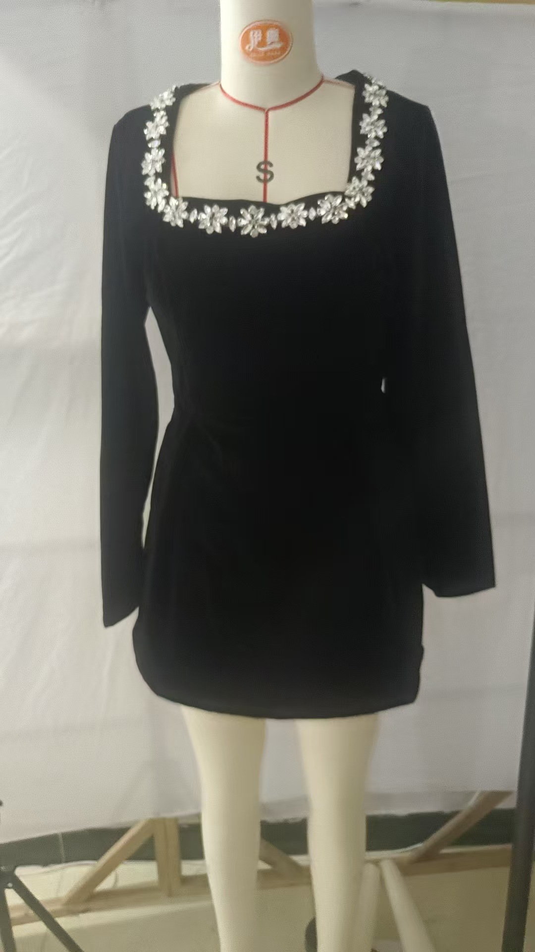 유럽과 미국의 국경 2024 봄 여성 의류 원피스 우아한 스퀘어 칼라 진주 레이스 짧은 패션 원피스스토어 가기