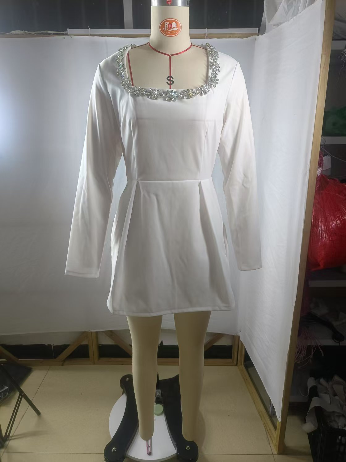 유럽과 미국의 국경 2024 봄 여성 의류 원피스 우아한 스퀘어 칼라 진주 레이스 짧은 패션 원피스