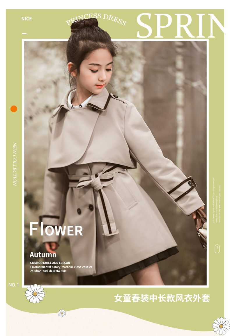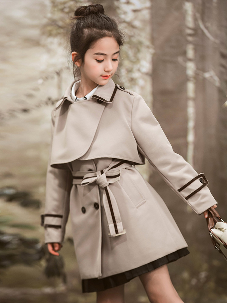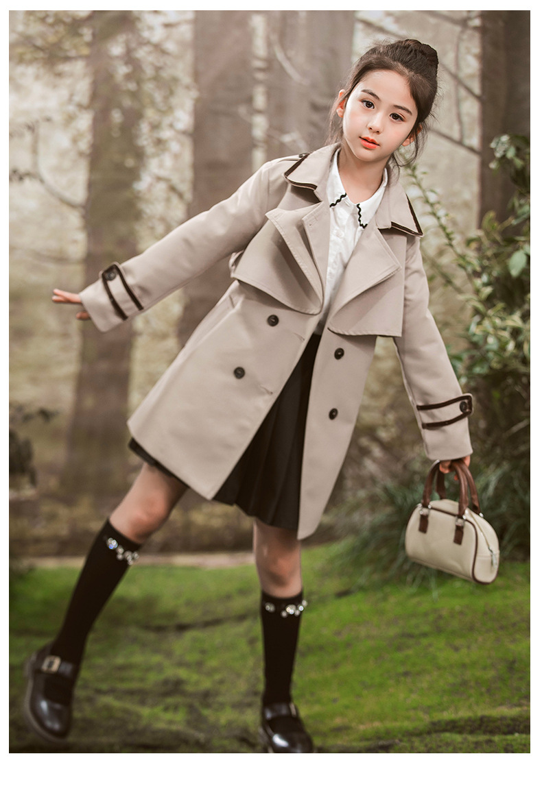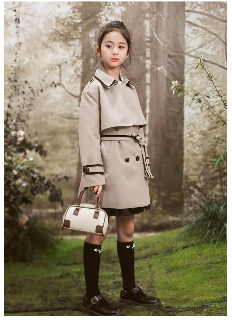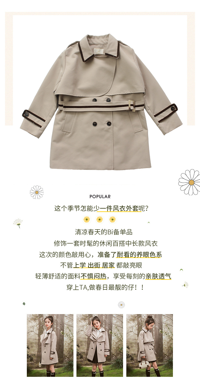 女童风衣外套2024年春秋装新韩版中大童外套女孩中长款儿童风衣