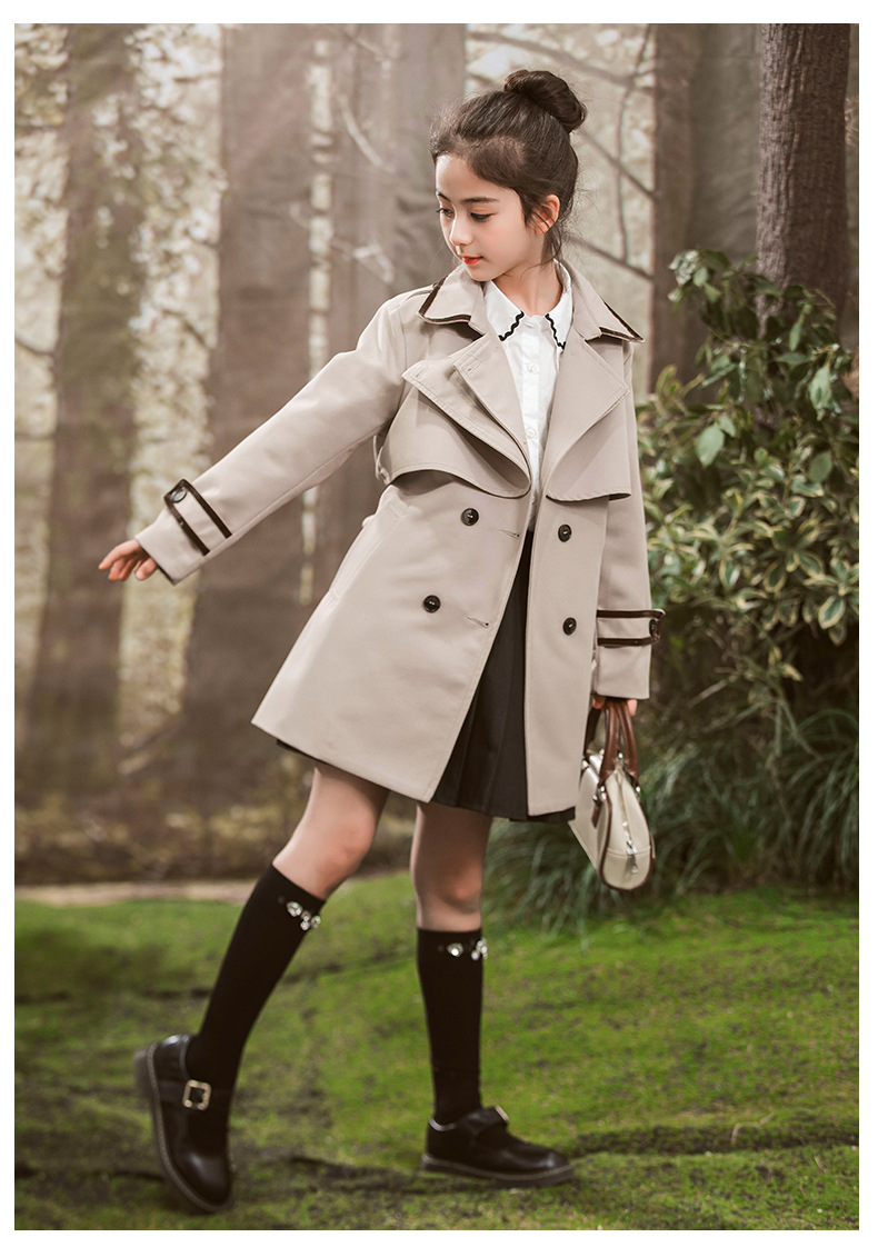 여아용 윈드브레이커 2025 봄 신상 더블 버튼 중대형 아동 영국 스타일 코트 어린이 가을 중장형 코트스토어 가기