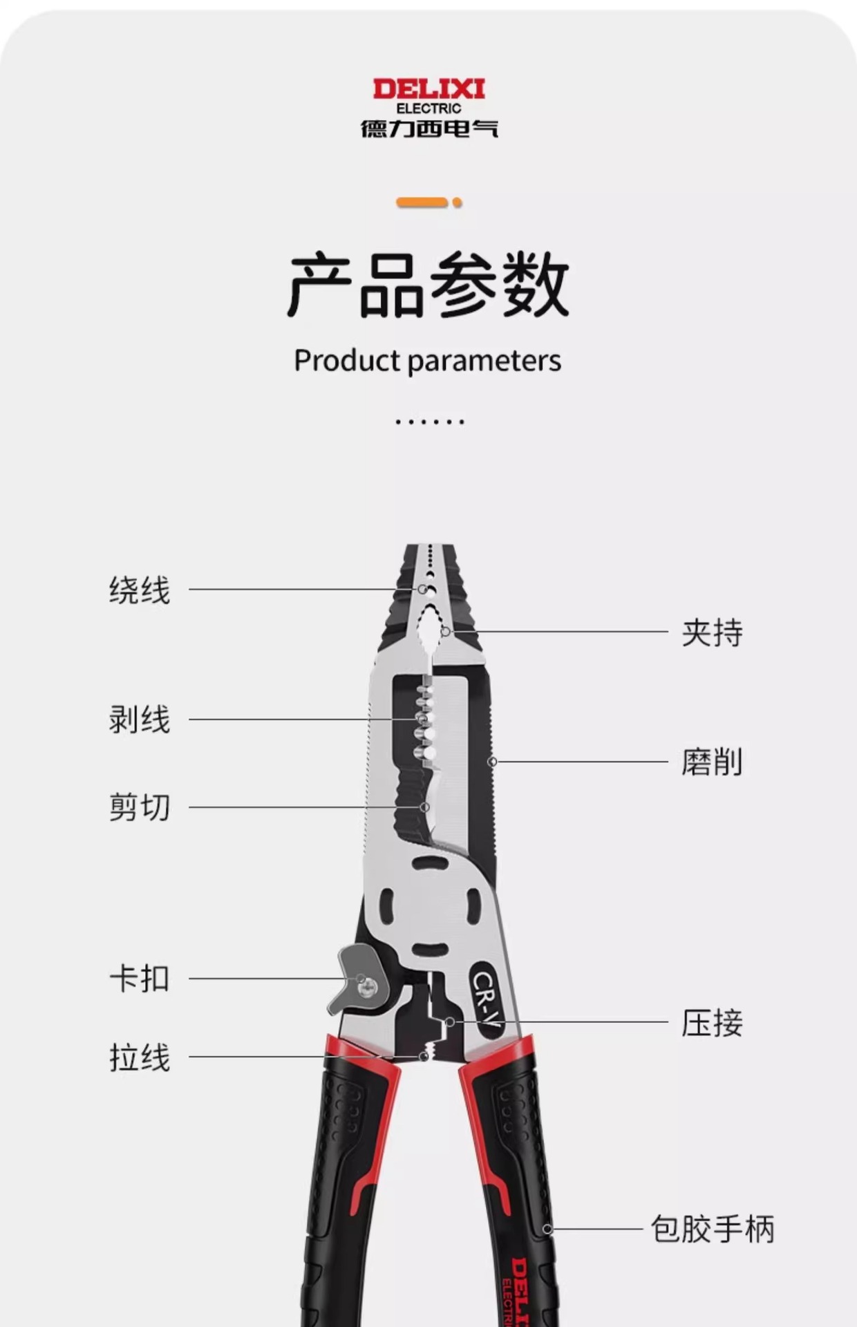 Delixi 전기 펜치 다기능 와이어 스트리퍼 와이어 커터 전기 특수 뾰족한 범용 와이어 스트리퍼