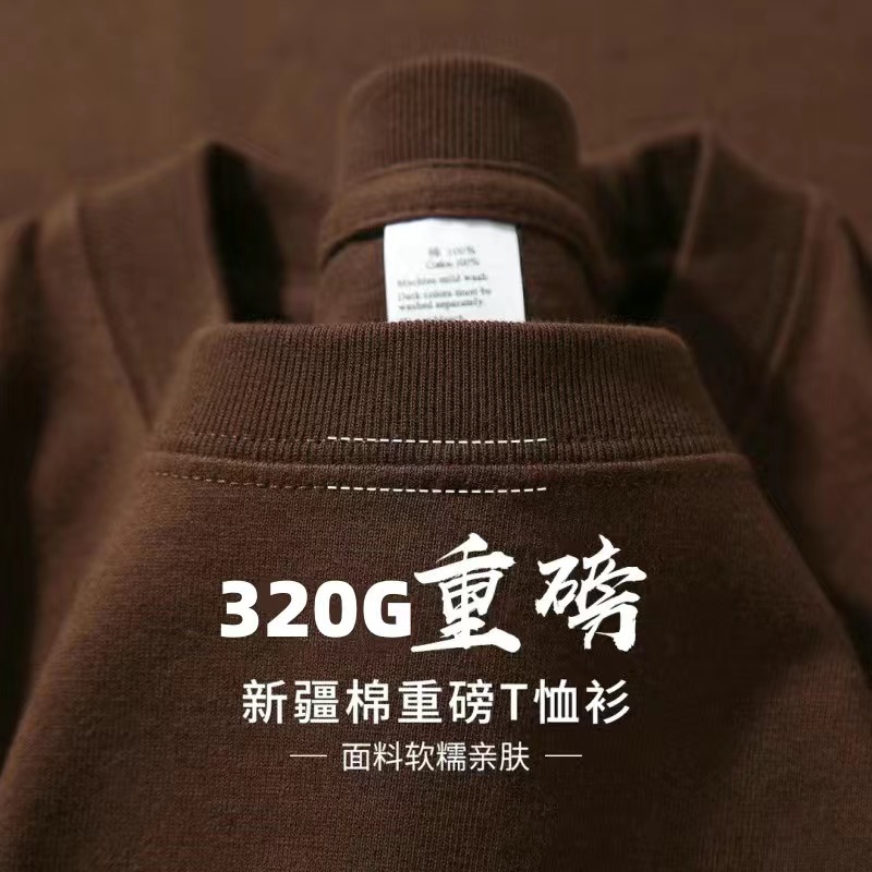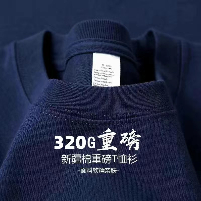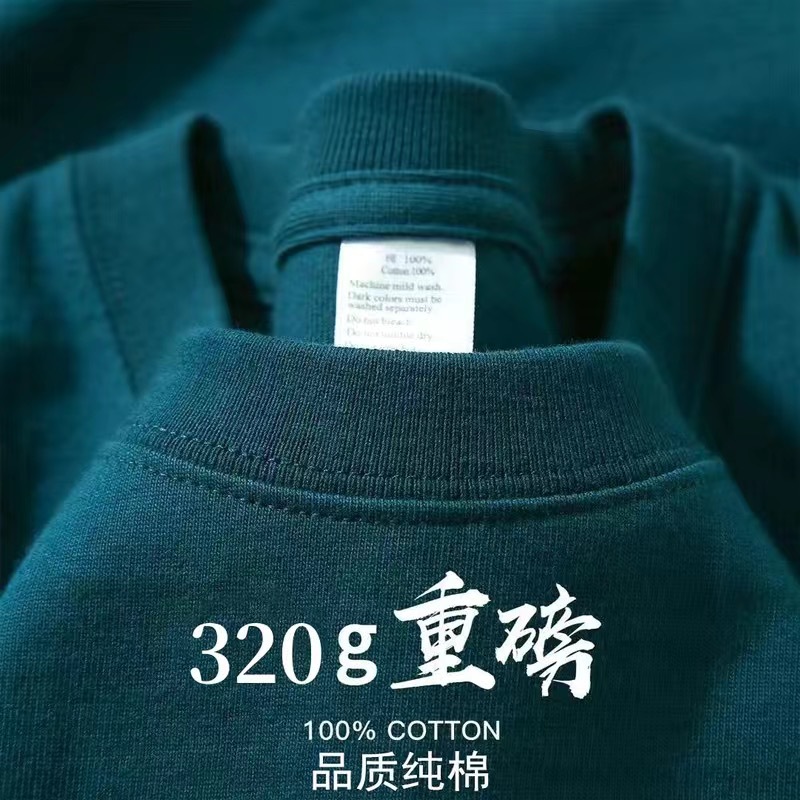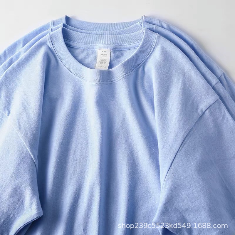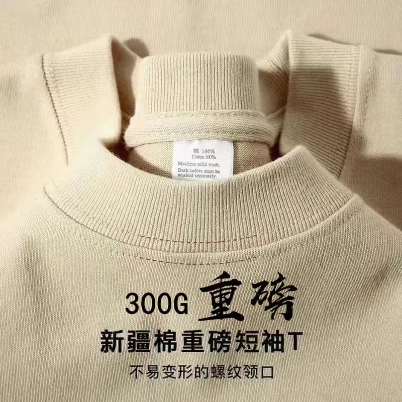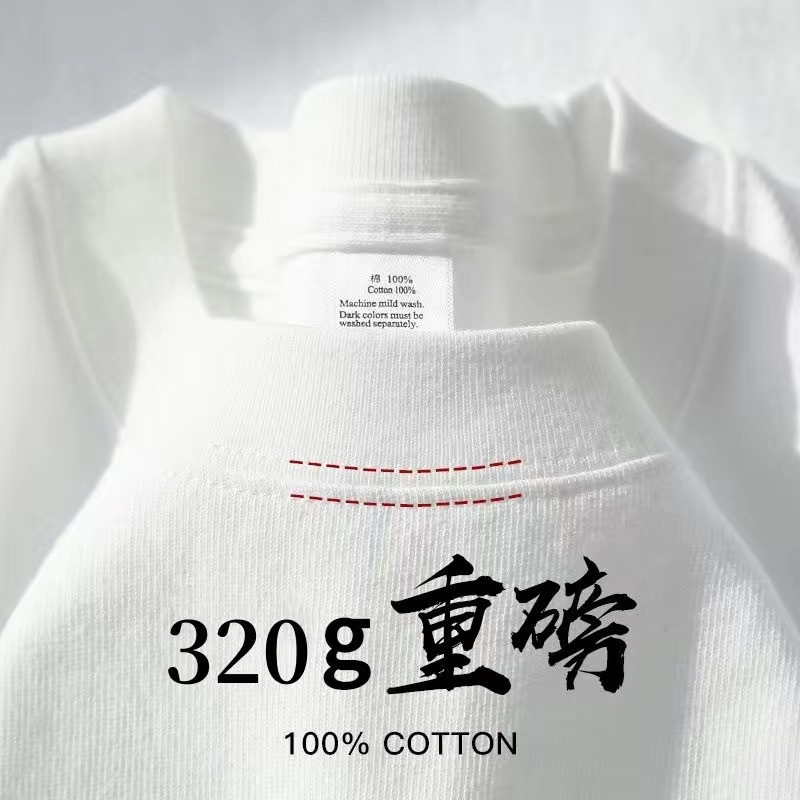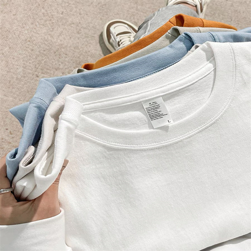 단색 320g 무거운 티셔츠 남성용 여름 느슨한면 청소년 순수한 흰색 커플 안쪽 바닥 셔츠스토어 가기