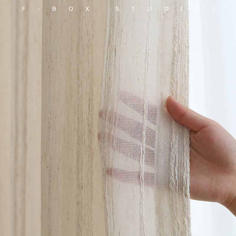 거실, 침실, B&B, 다실용 세로 리넨 스트라이프 거즈 커튼, 일본식 통풍 및 불투명 창 커튼스토어 가기