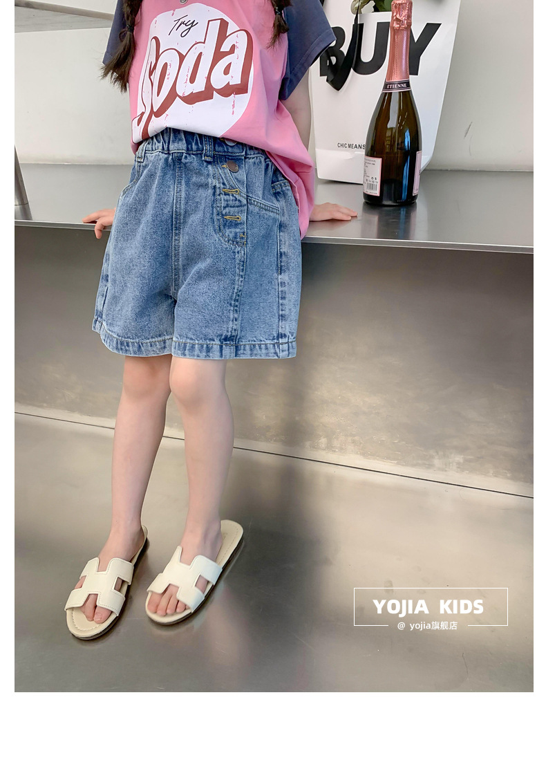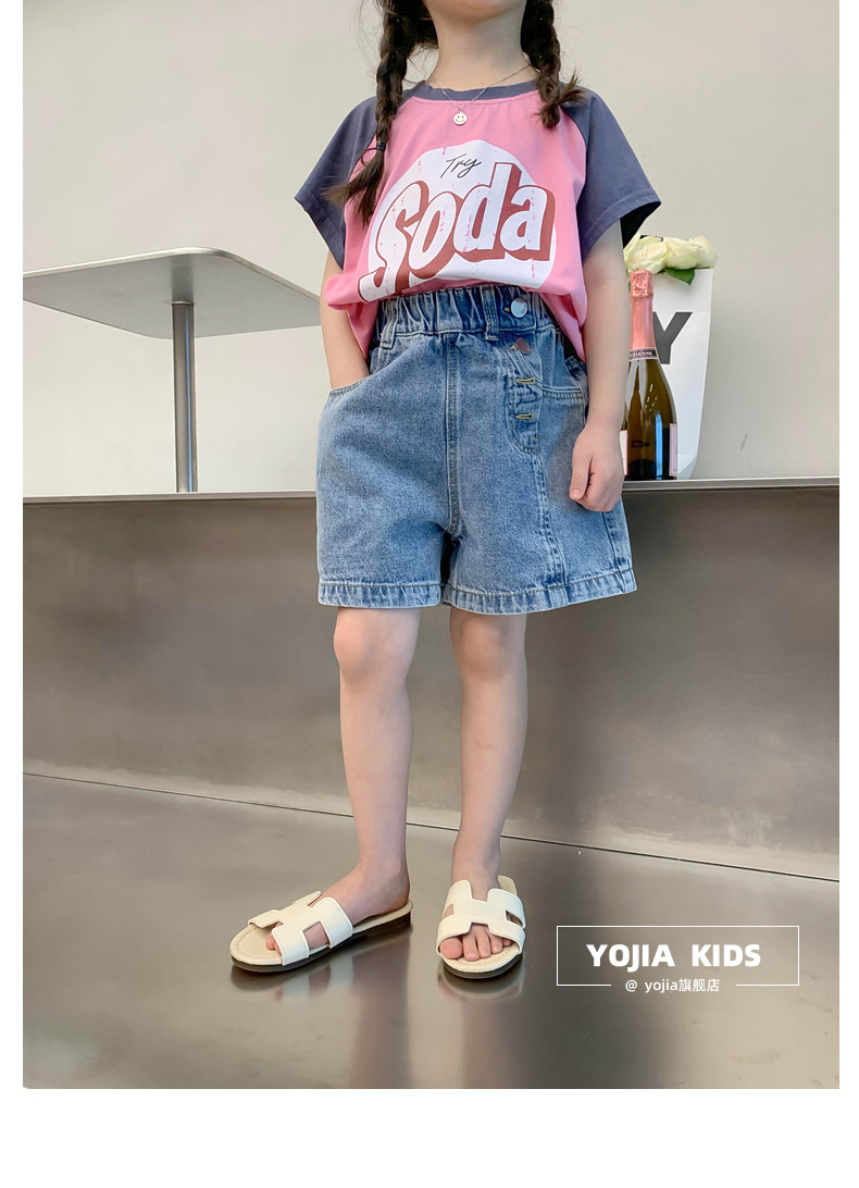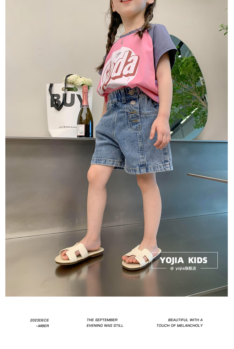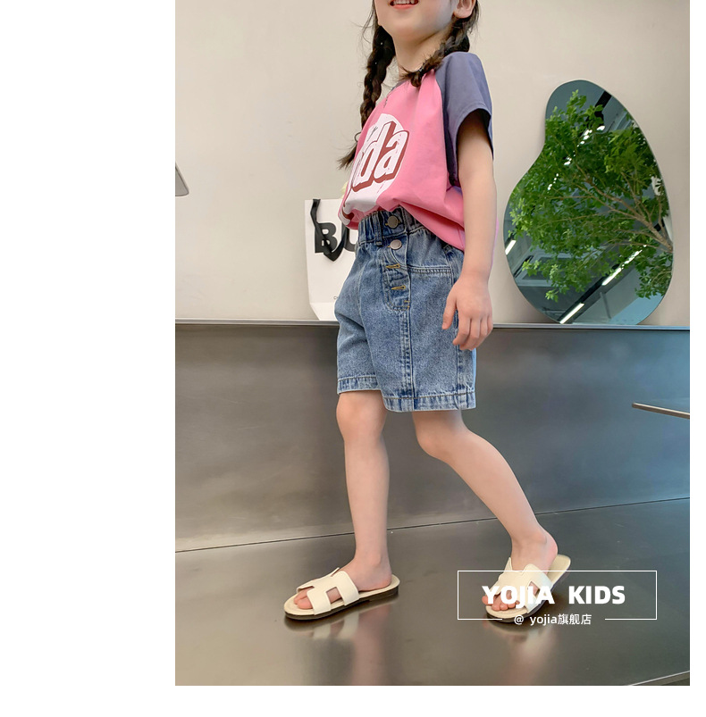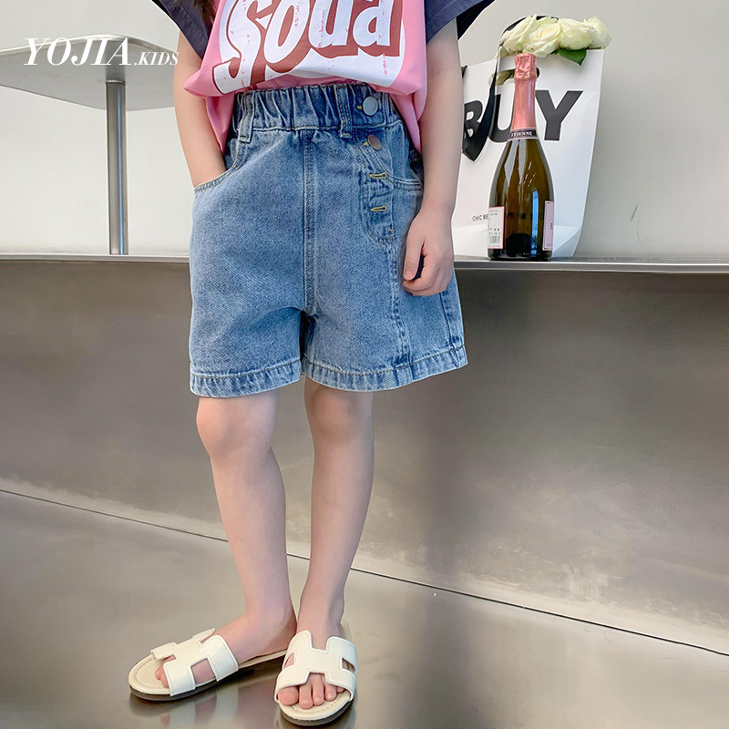 소녀 데님 반바지 여름 2023 새로운 스타일 서양식 아우터 착용 아기의 5 점 바지 얇은 느슨한 어린이 핫 바지 여름스토어 가기