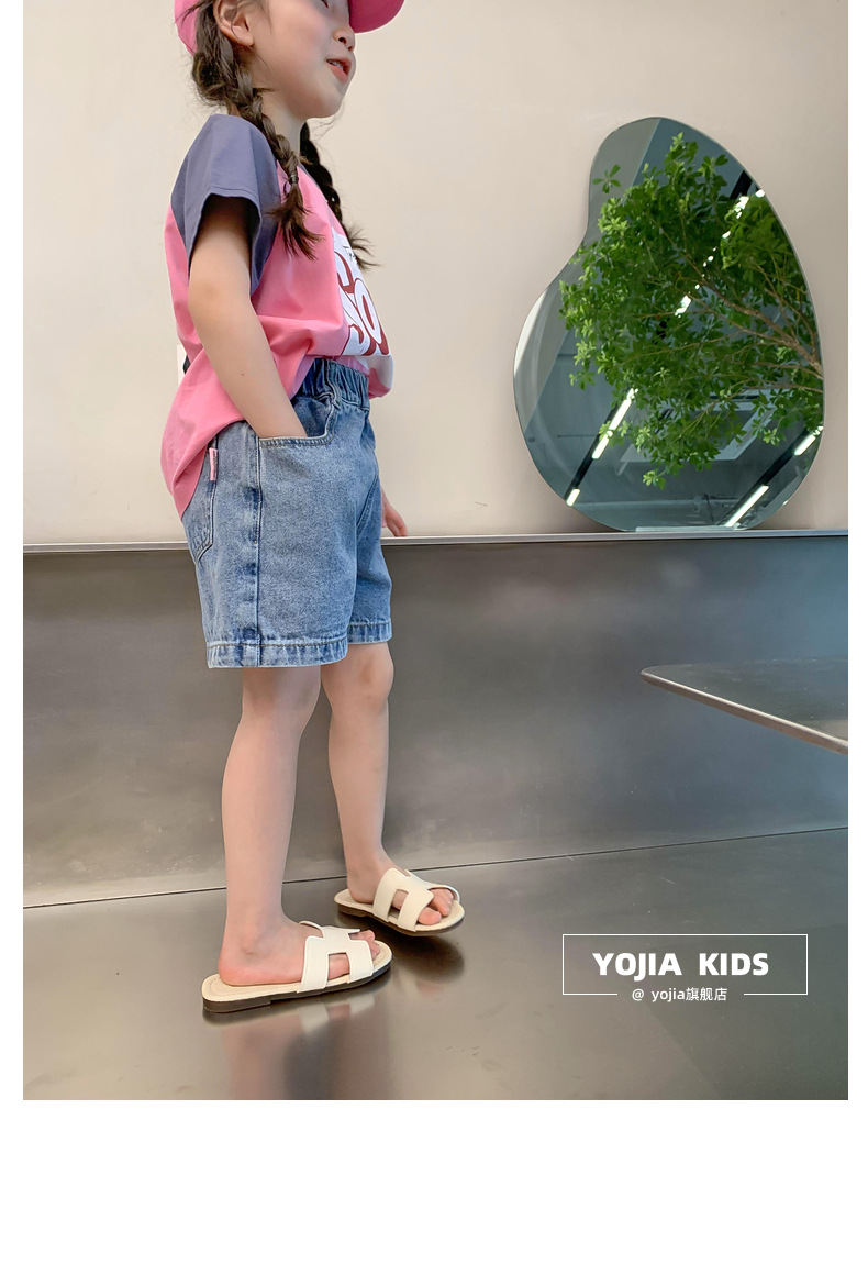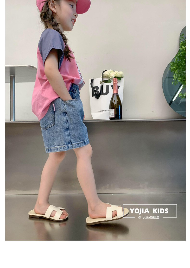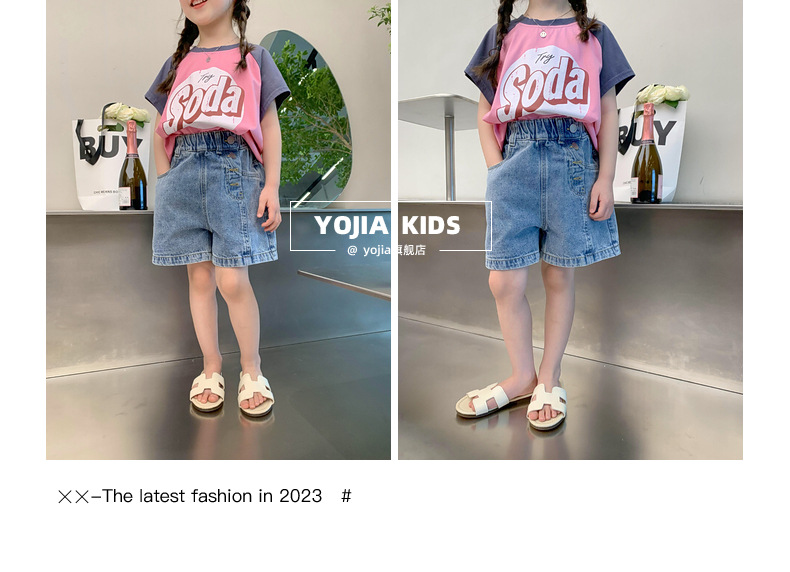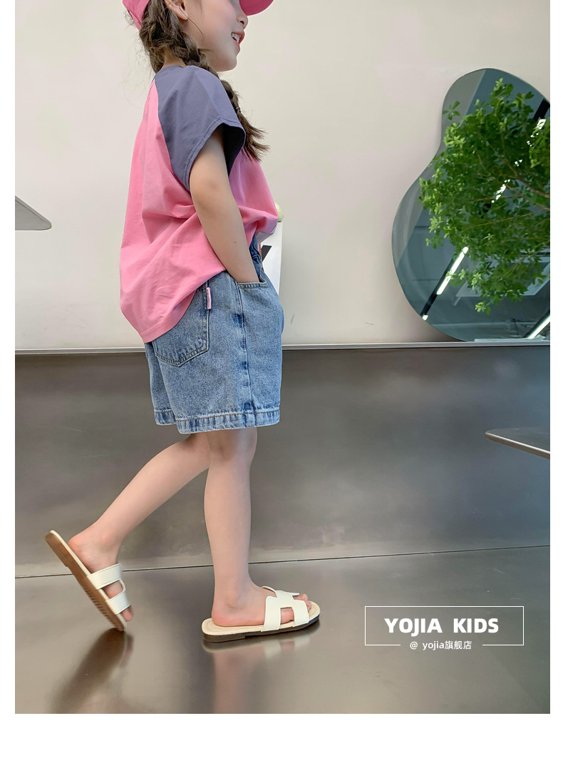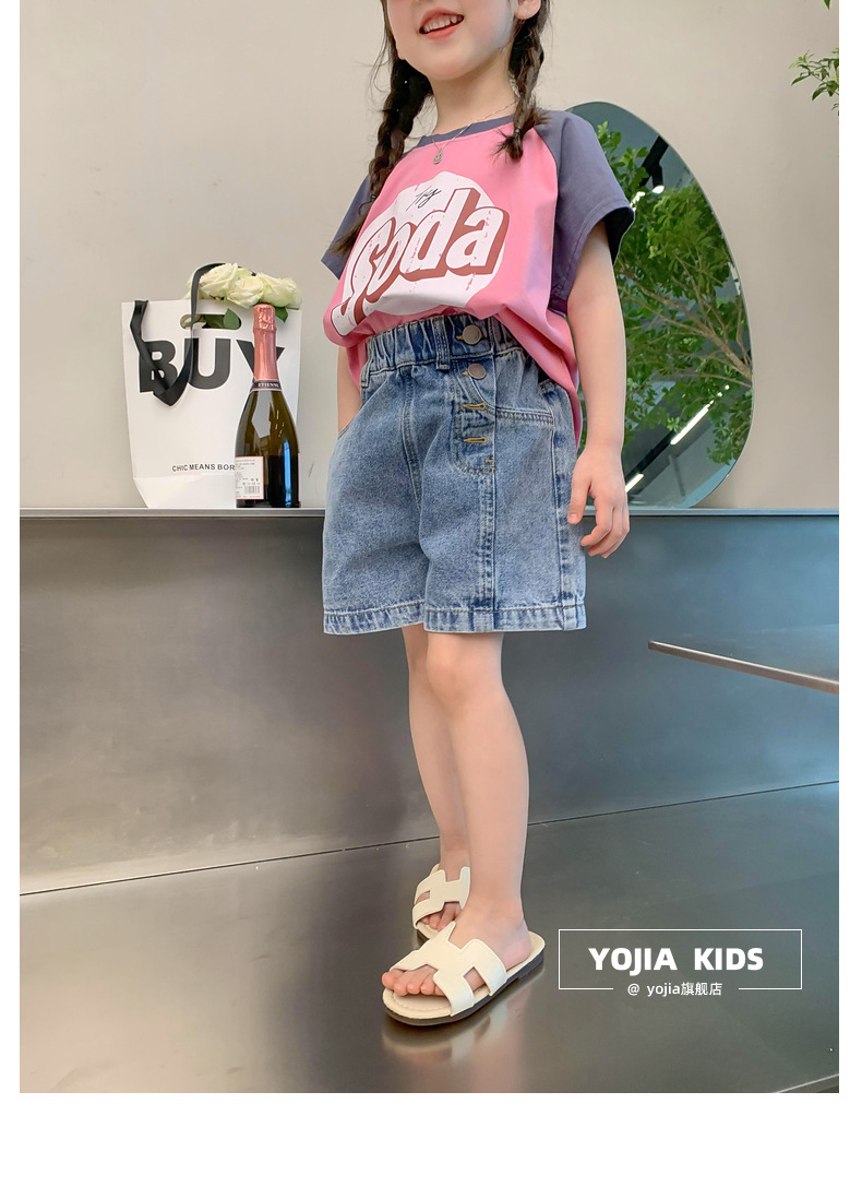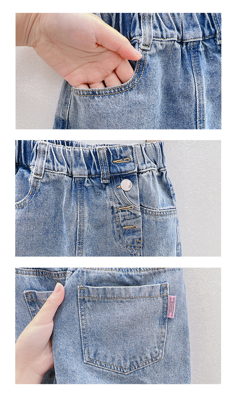 소녀 데님 반바지 여름 2023 새로운 스타일 서양식 아우터 착용 아기의 5 점 바지 얇은 느슨한 어린이 핫 바지 여름스토어 가기