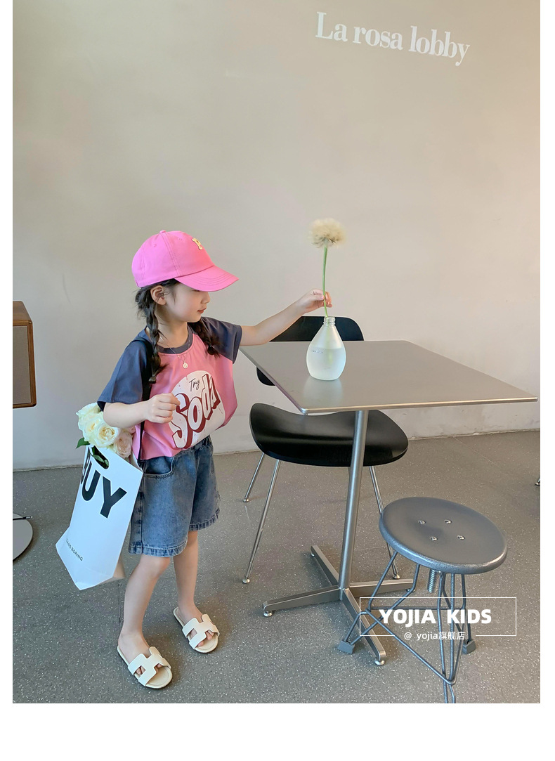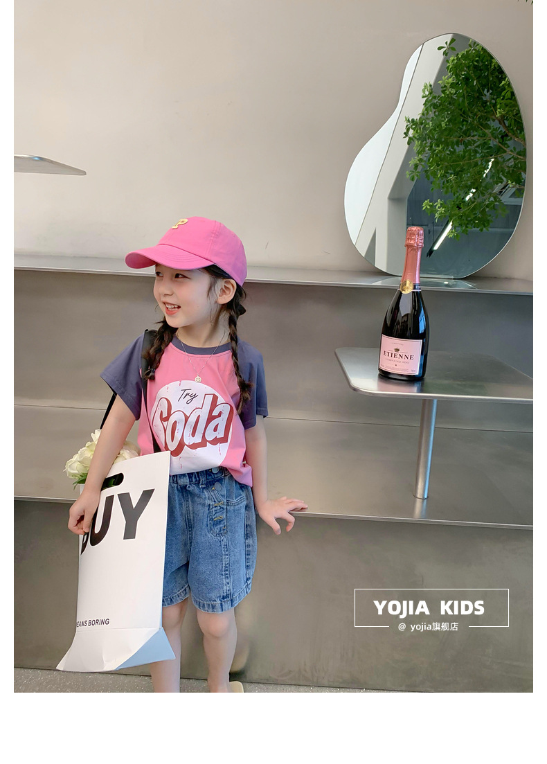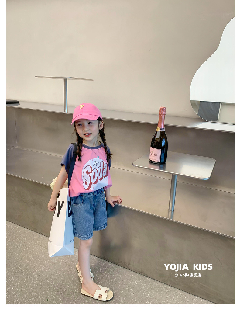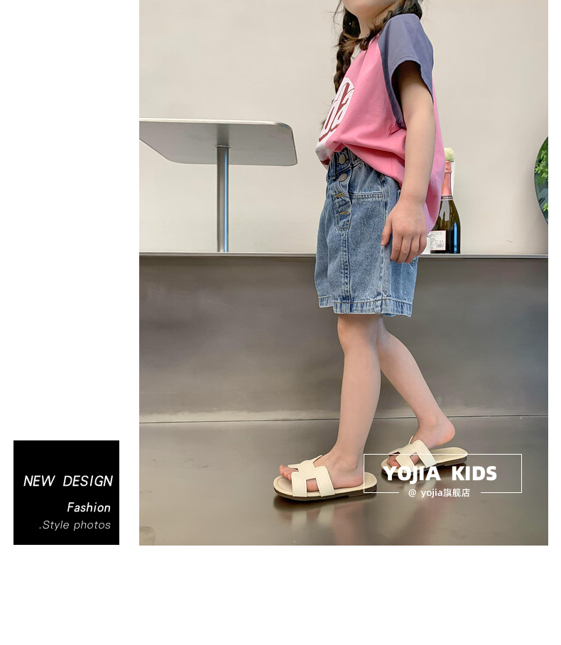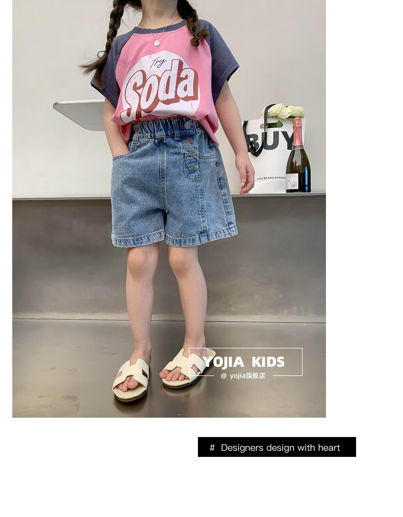 소녀 데님 반바지 여름 2023 새로운 스타일 서양식 아우터 착용 아기의 5 점 바지 얇은 느슨한 어린이 핫 바지 여름스토어 가기