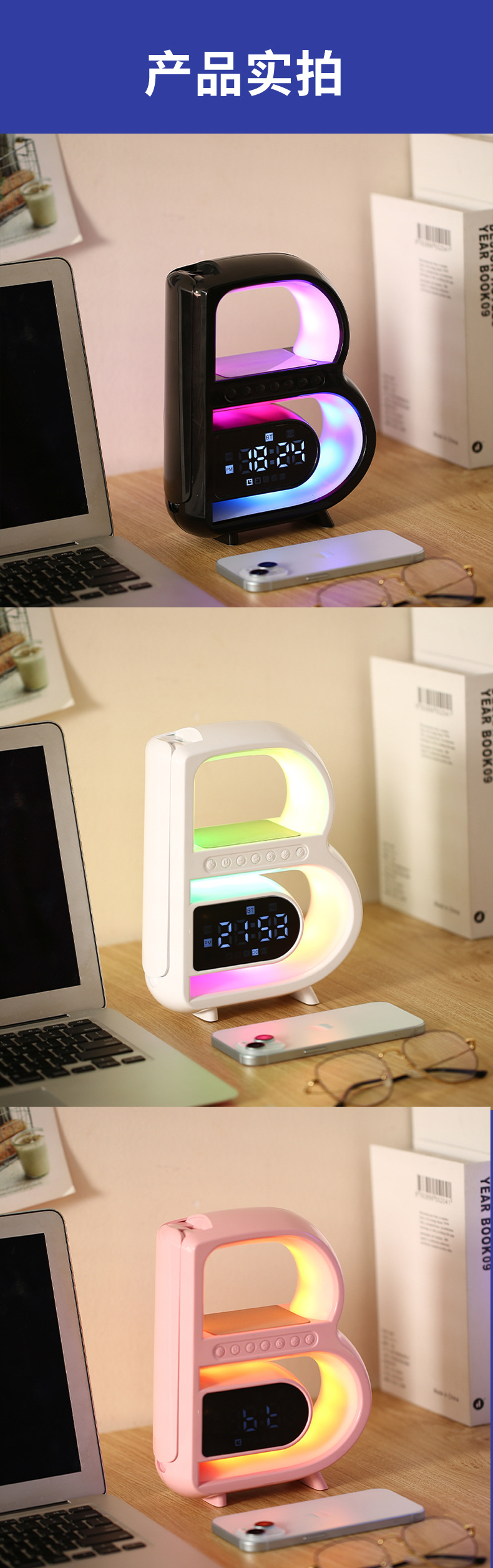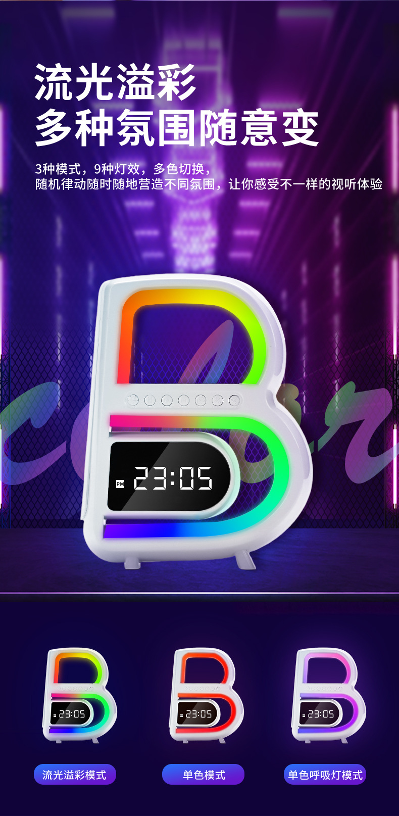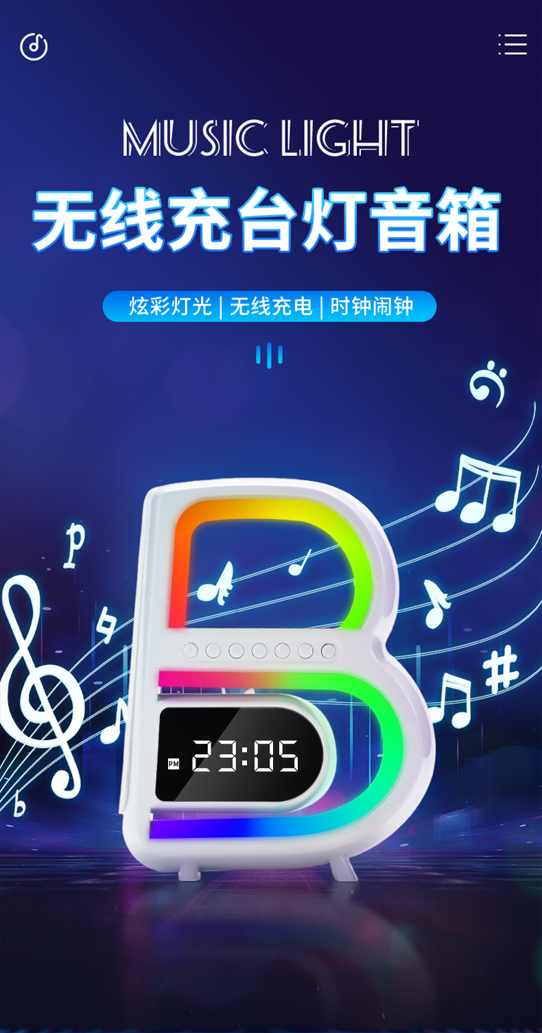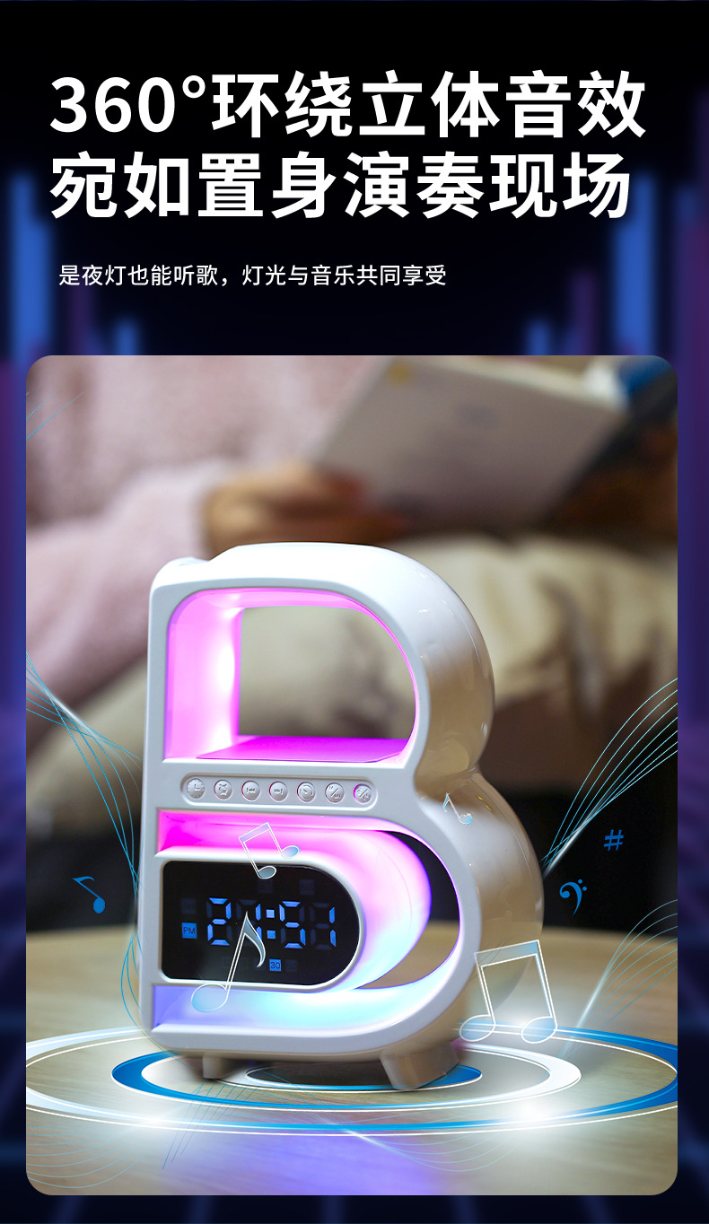 2024 개인 모델 폭발 큰 B 블루투스 스피커 무선 충전 시계 오디오 다채로운 분위기 빛 무거운 서브 우퍼