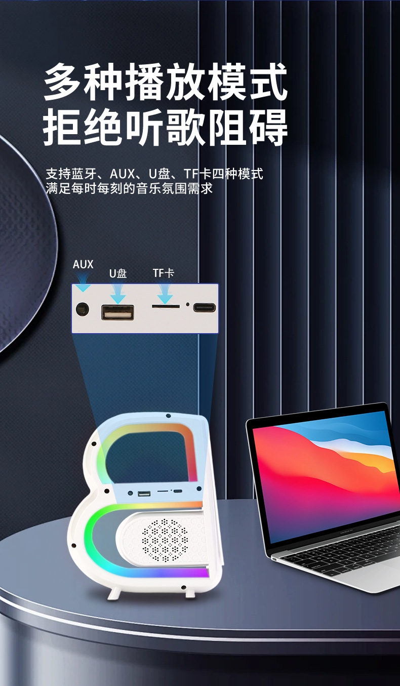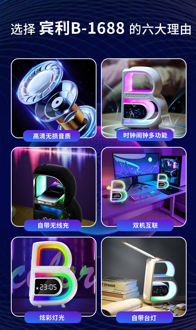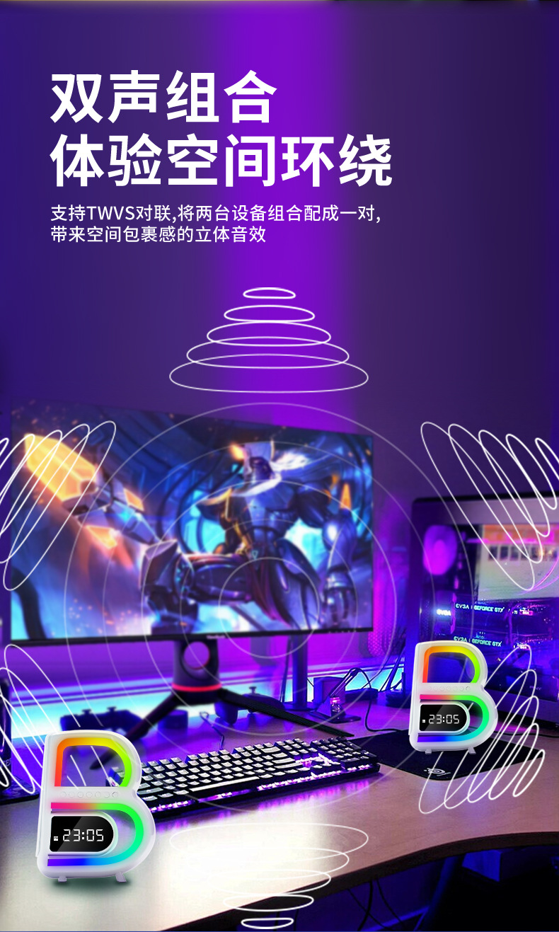 2024 개인 모델 폭발 큰 B 블루투스 스피커 무선 충전 시계 오디오 다채로운 분위기 빛 무거운 서브 우퍼스토어 가기