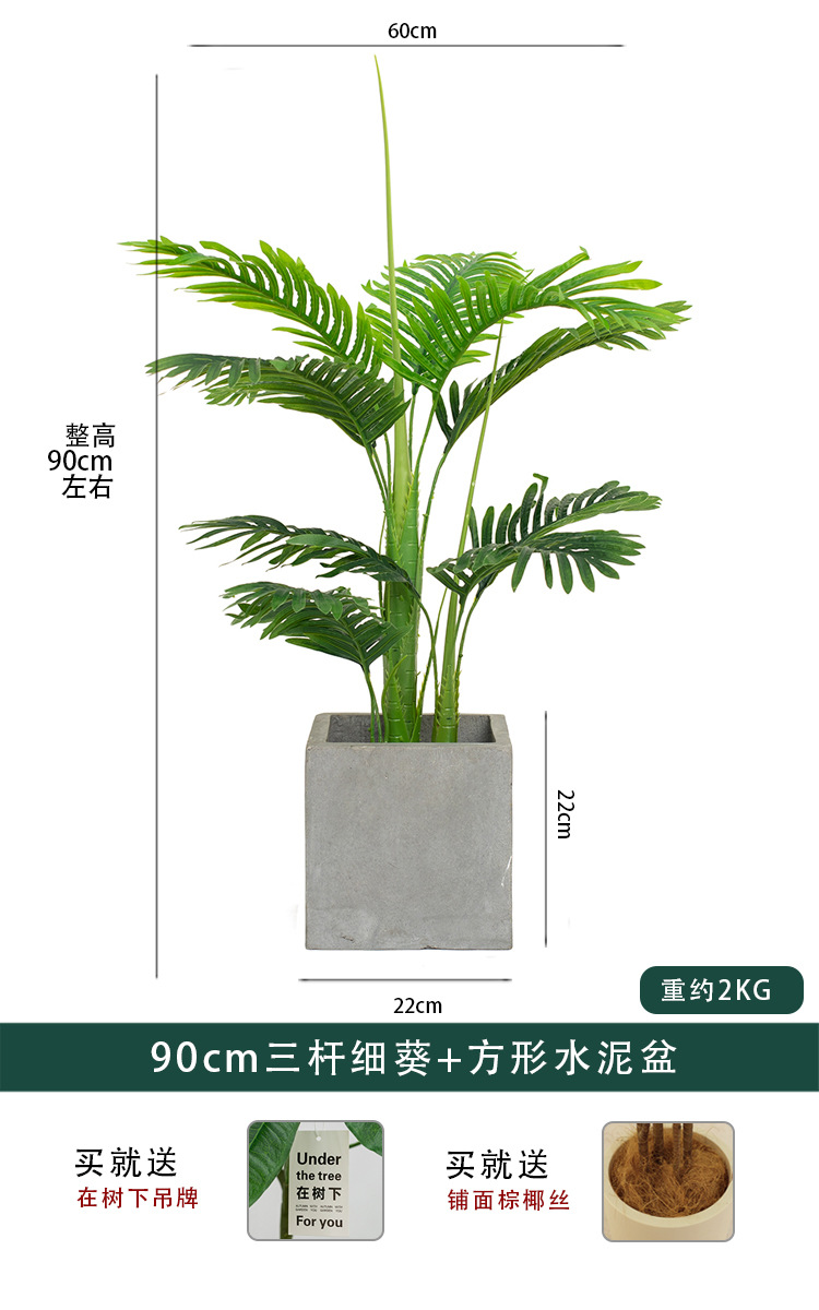 • 90cm 3 극 고급 해바라기 + 사각형 시멘트 분지