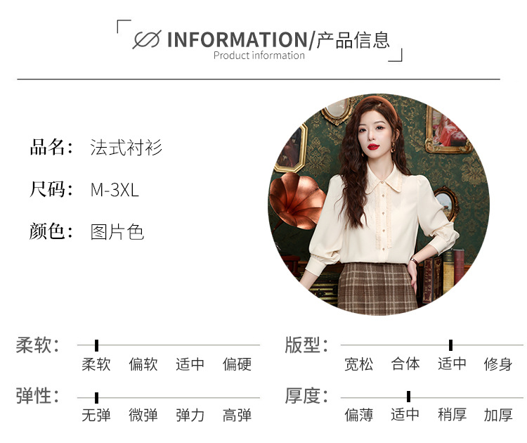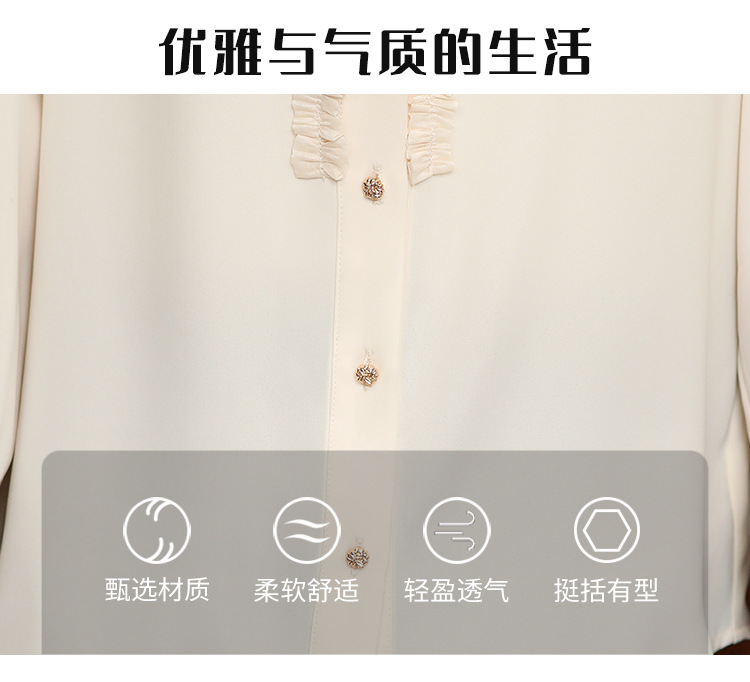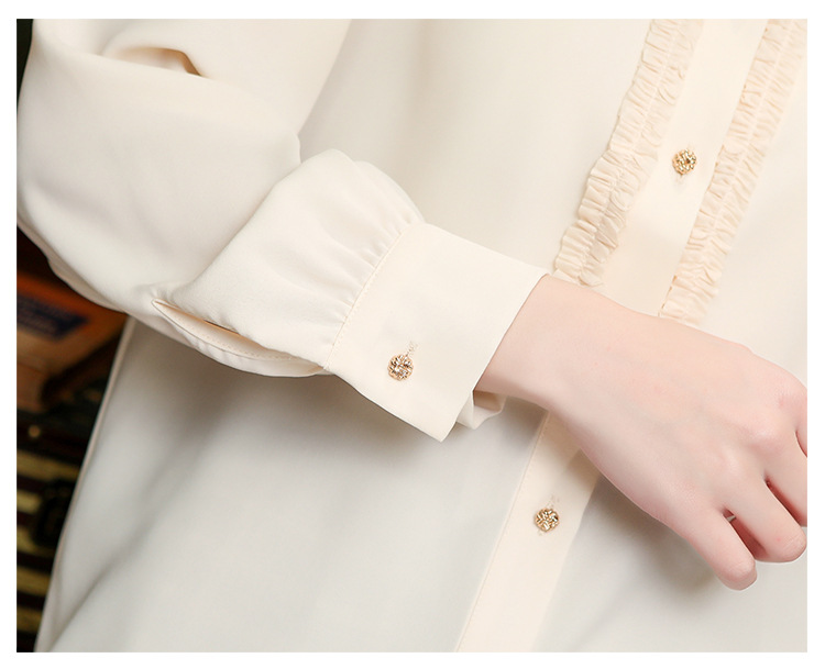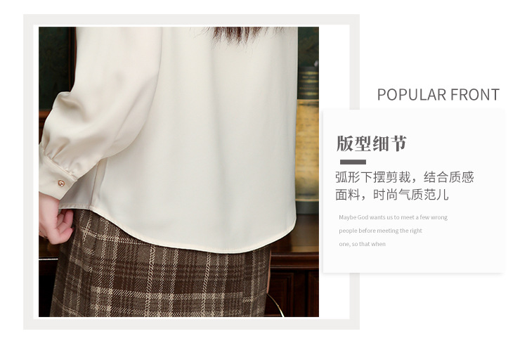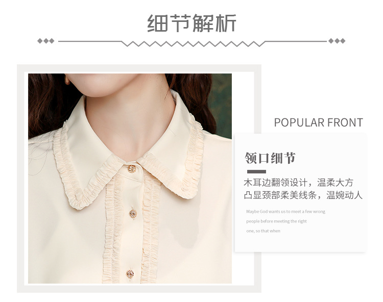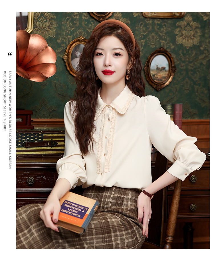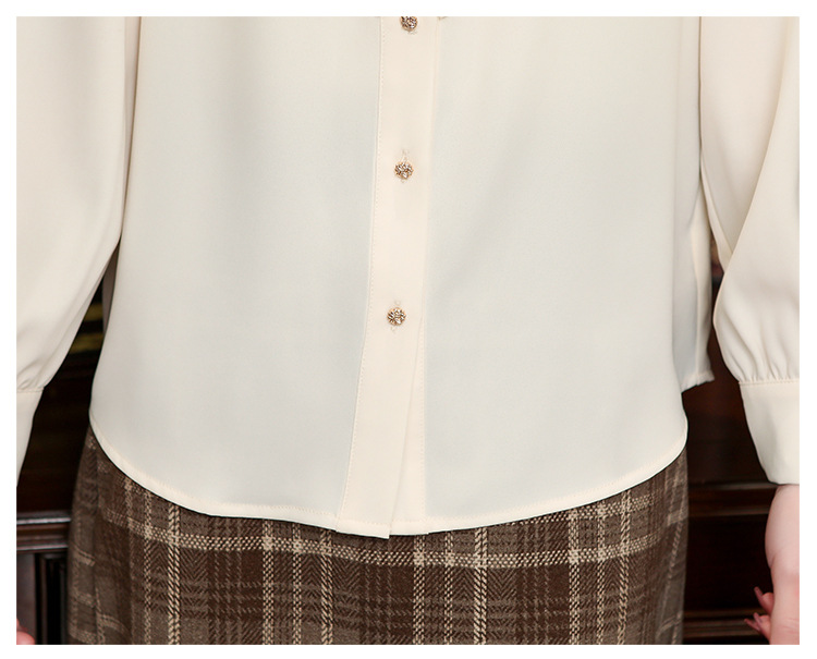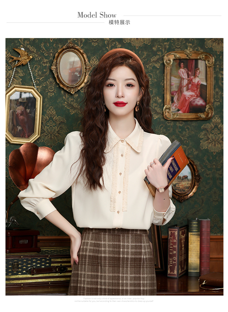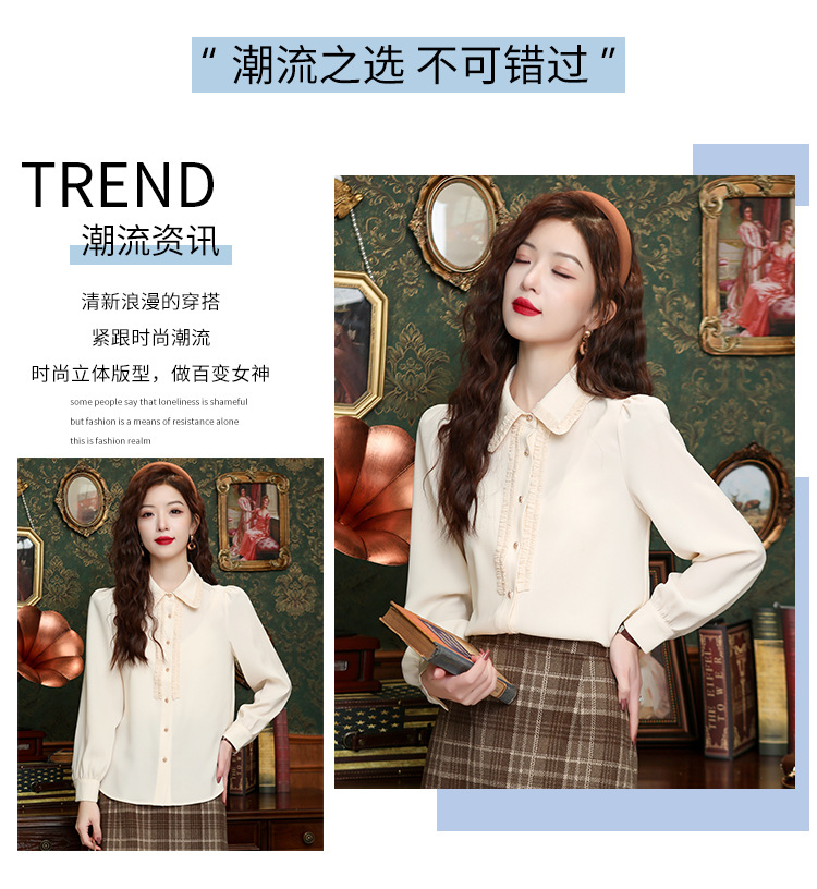 나무 귀 인형 칼라 쉬폰 셔츠 새틴 셔츠 여성 긴 소매 2024 봄과 가을 새로운 OL 기질 작은 셔츠 도매스토어 가기