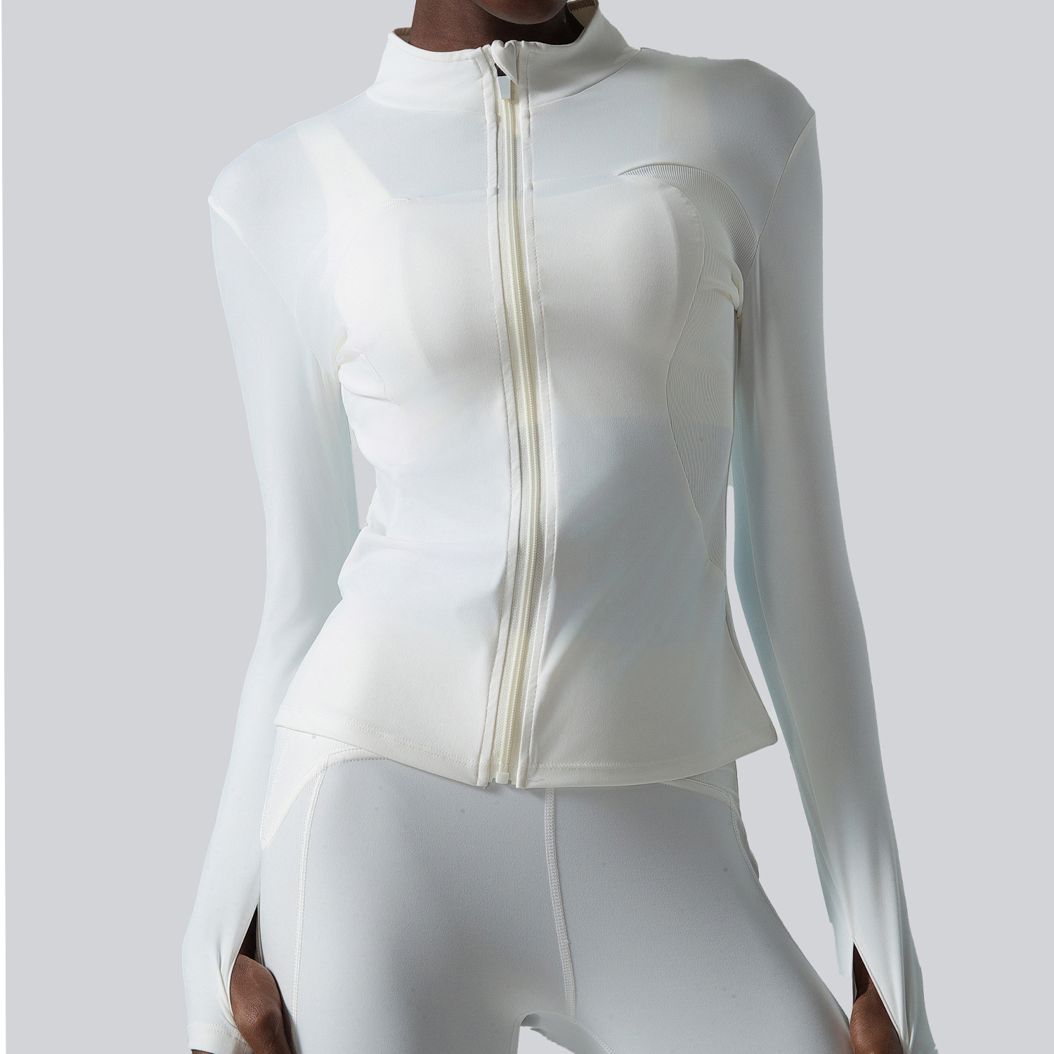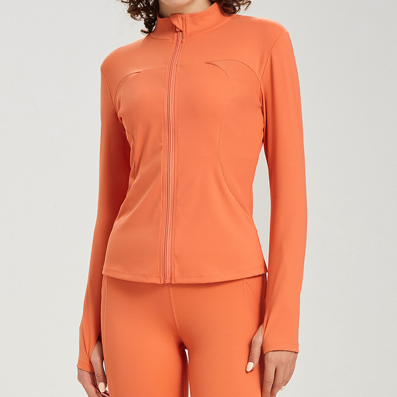 여성용 크로스보더 타이트 슬리밍 지퍼 요가 재킷 스탠드 칼라 스트레치 스포츠 피트니스 재킷 긴팔 러닝웨어