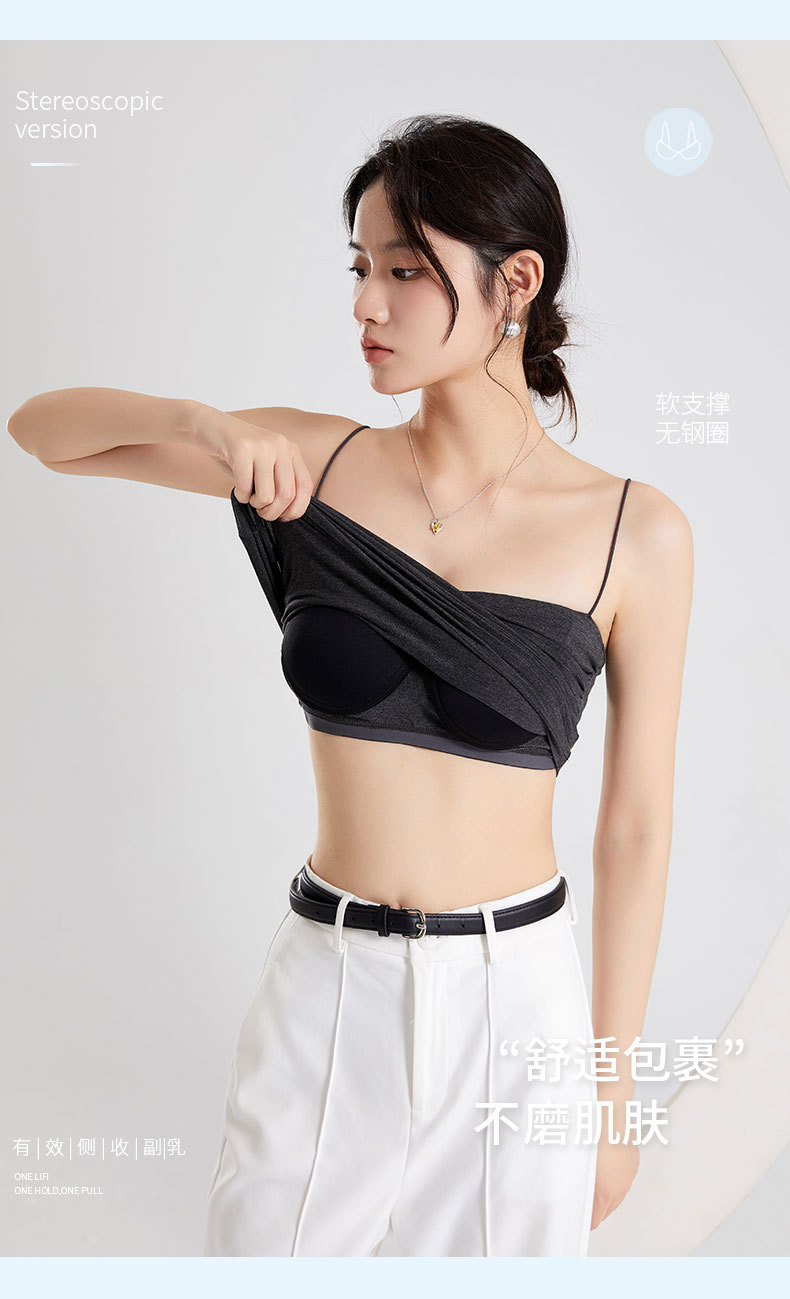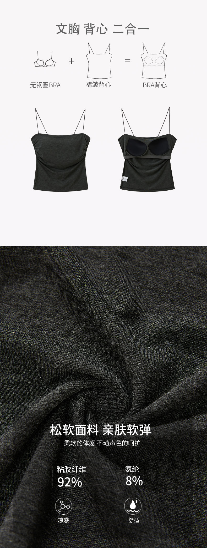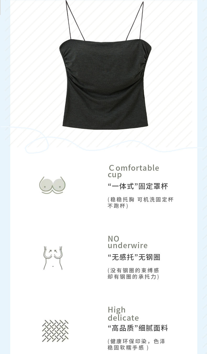 여성을위한 가슴 패드 속옷과 새로운 순수 주름 브라 원피스 스트랩 조끼 여름 겉옷