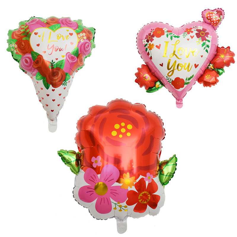 발렌타인 데이 러브 하트 로즈 꽃 버드 블라썸 알루미늄 필름 풍선 웨딩 룸 장식 장면스토어 가기
