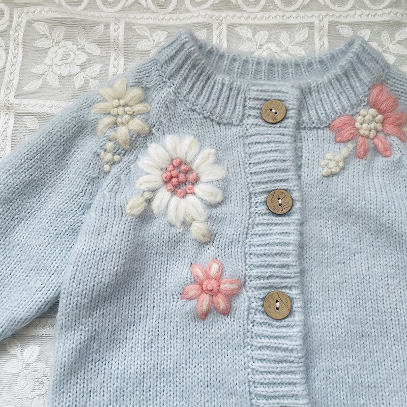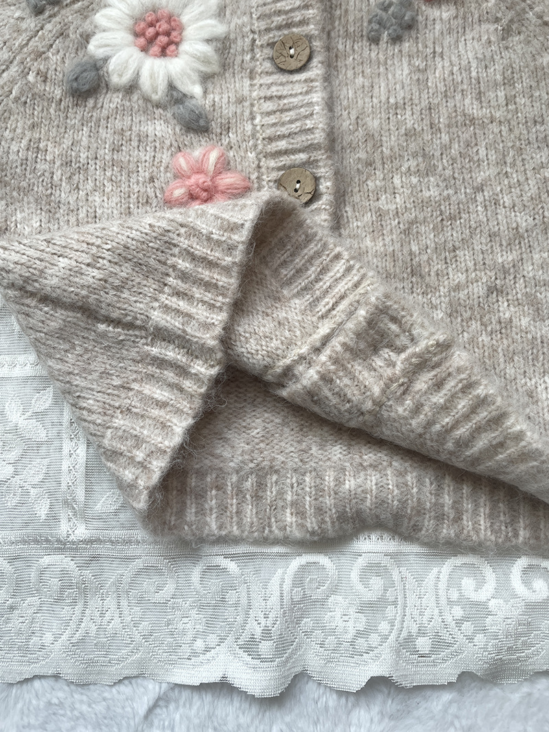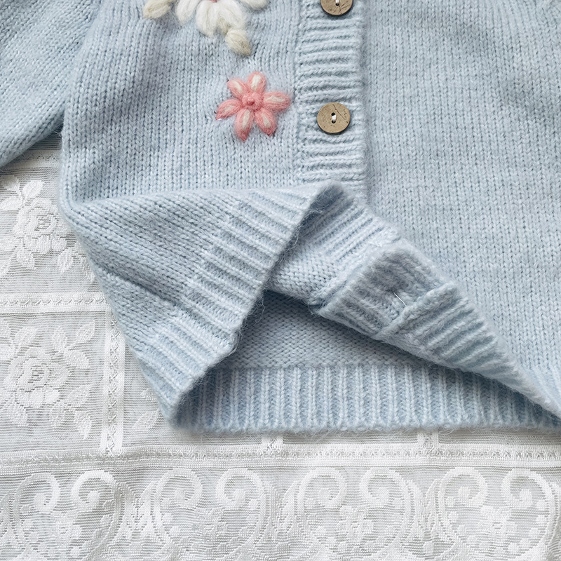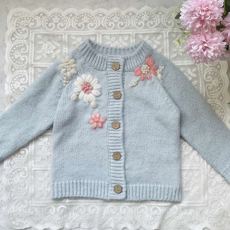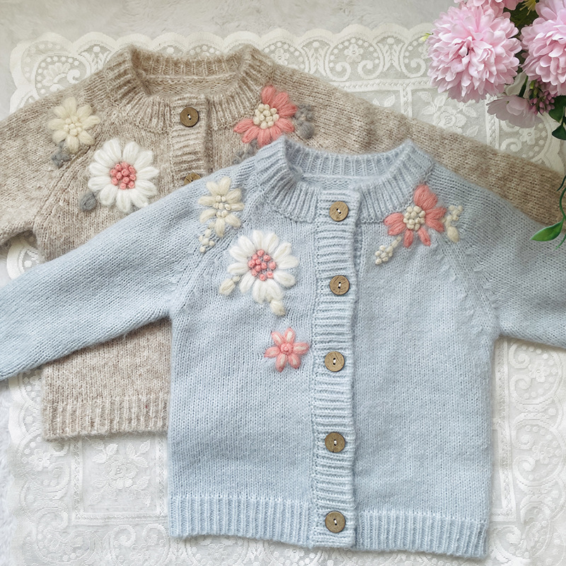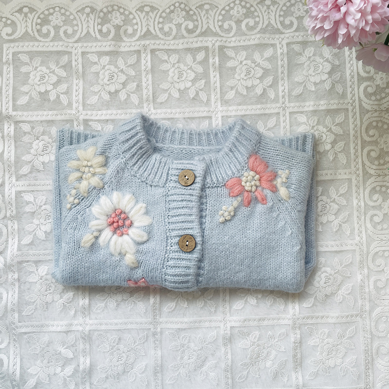 북유럽 인 스타일 새로운 2024 봄 소녀 수제 자수 니트 카디건 울 스웨터 하이 엔드 심플스토어 가기