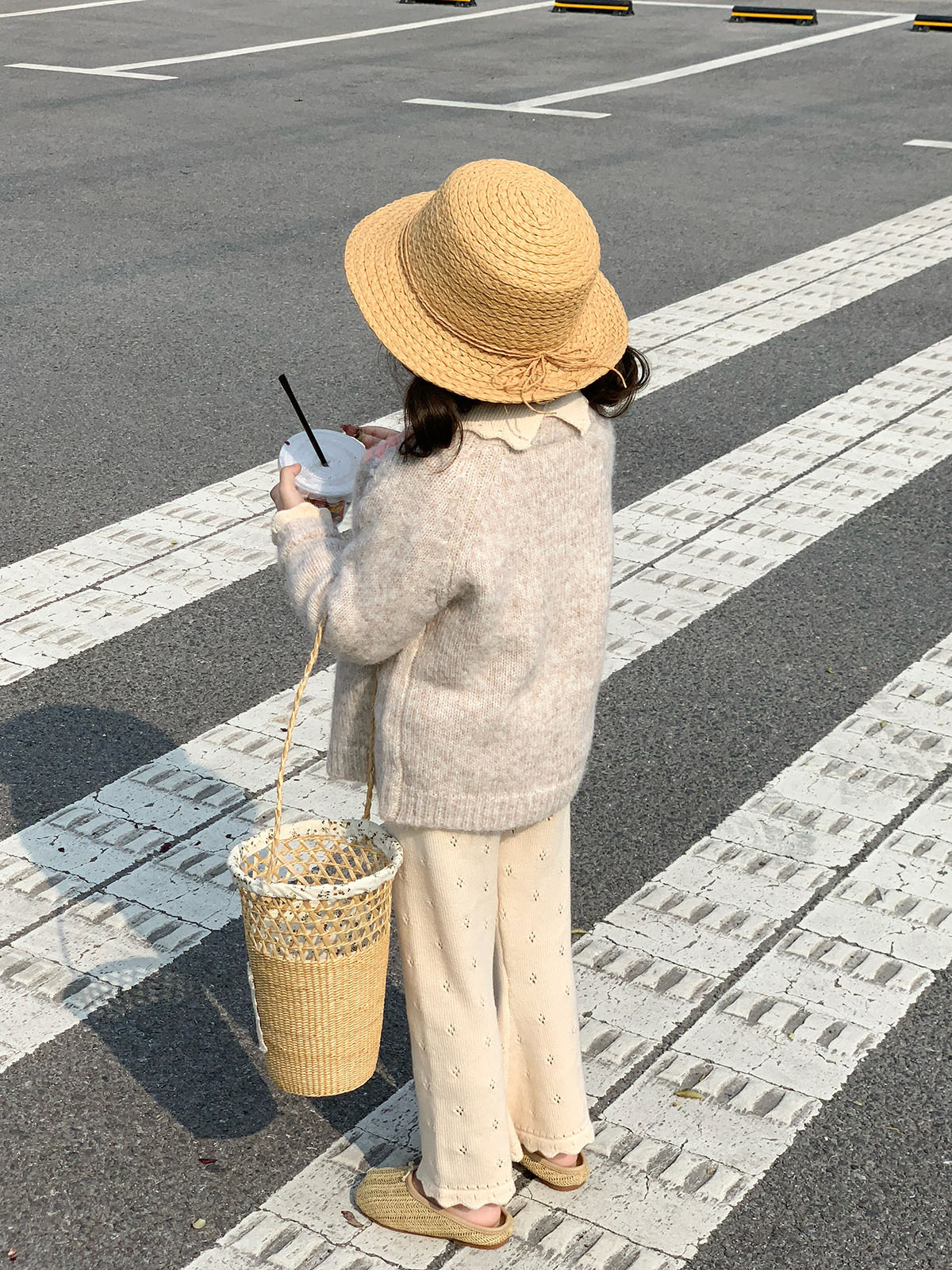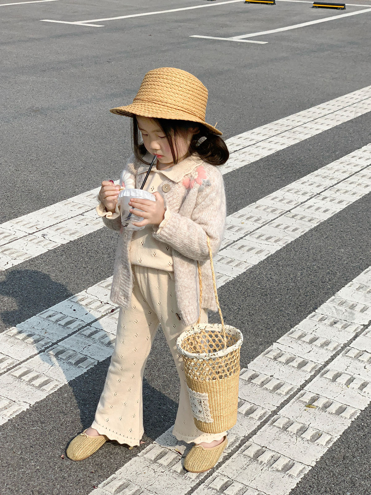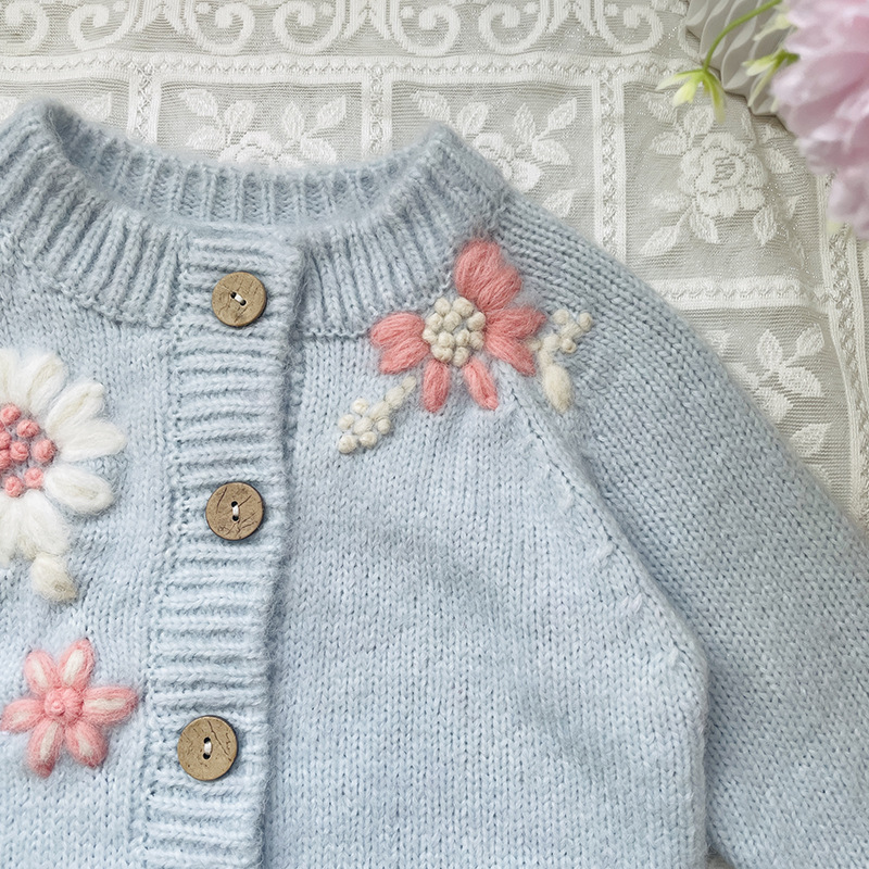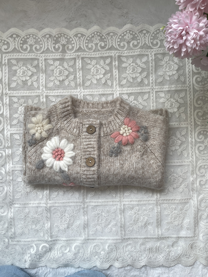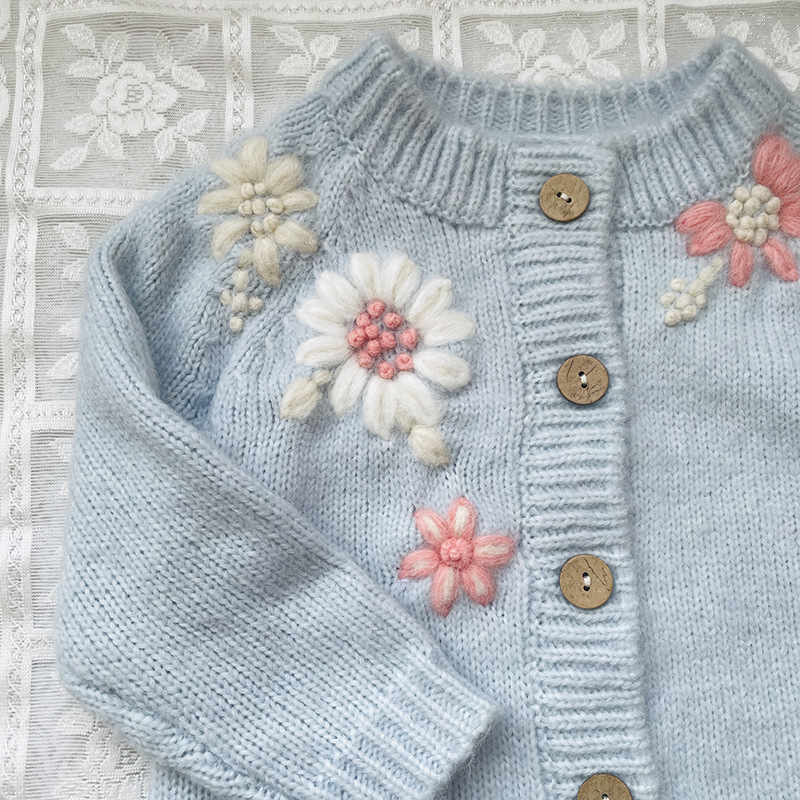 북유럽 인 스타일 새로운 2024 봄 소녀 수제 자수 니트 카디건 울 스웨터 하이 엔드 심플스토어 가기