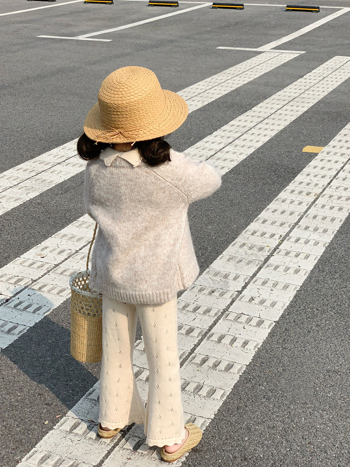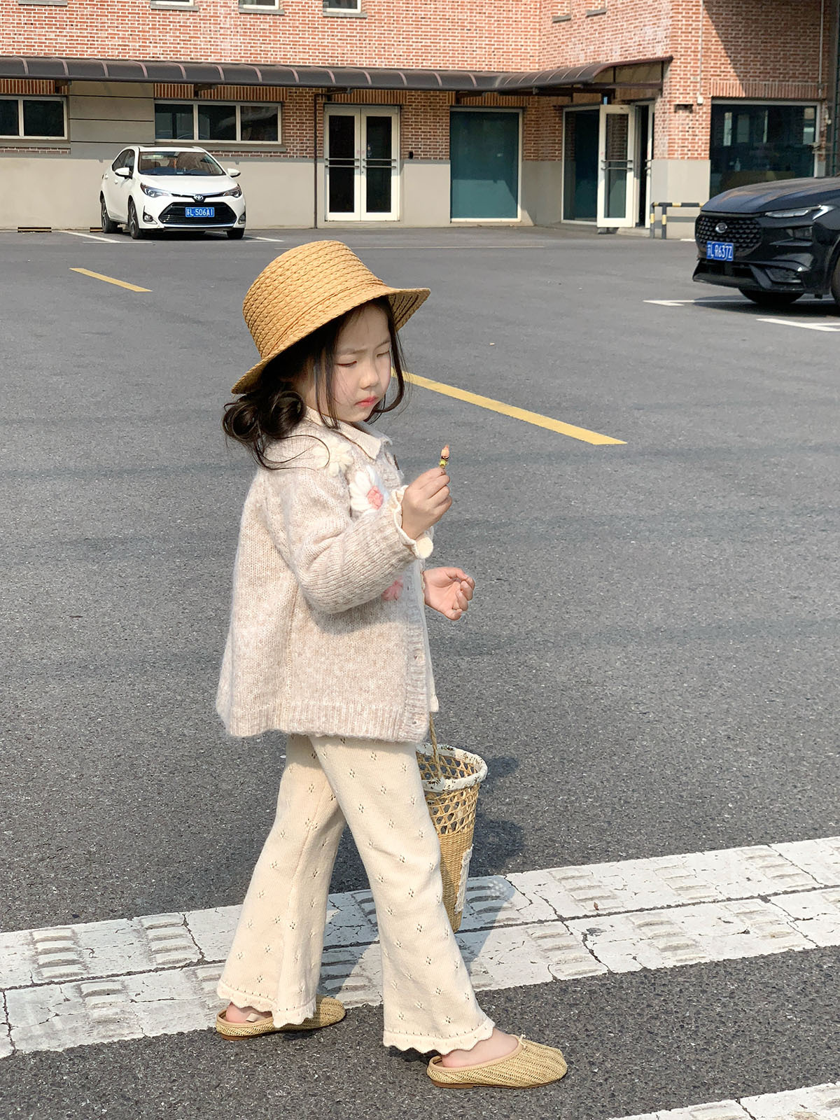 북유럽 인 스타일 새로운 2024 봄 소녀 수제 자수 니트 카디건 울 스웨터 하이 엔드 심플