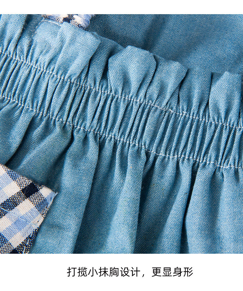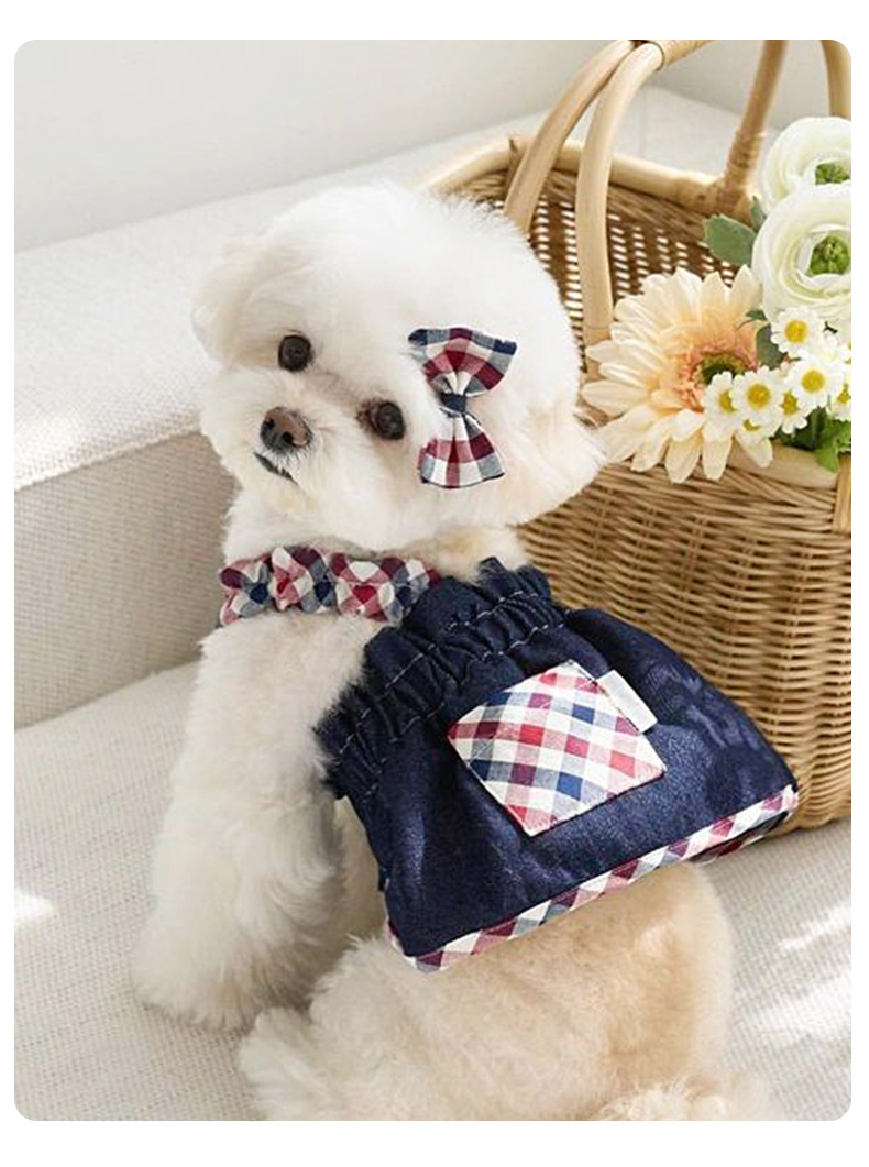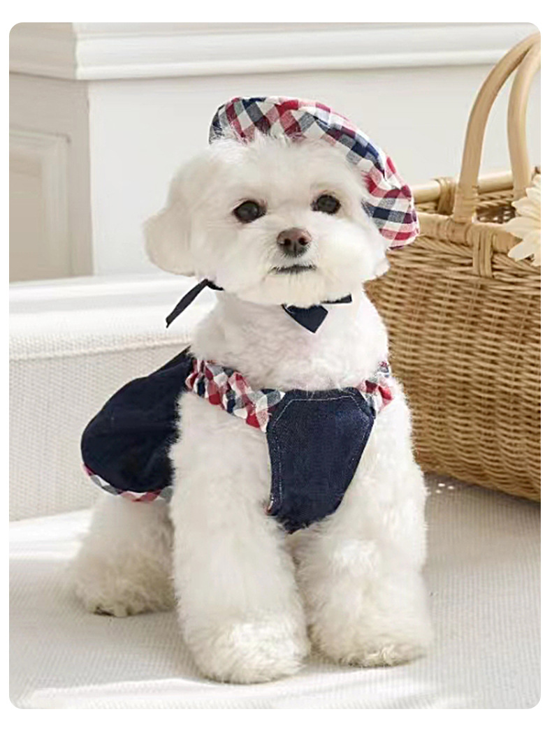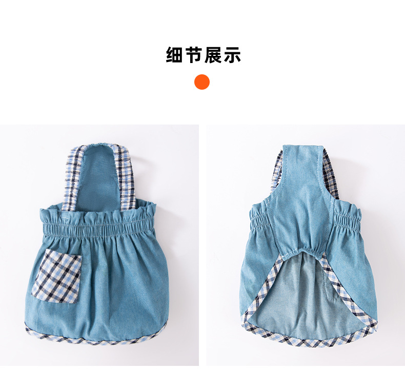봄과 여름 개 옷 격자 무늬 포켓 레이디 데님 서스펜더 스커트 조끼 중간 및 작은 개 고양이 애완 동물 옷