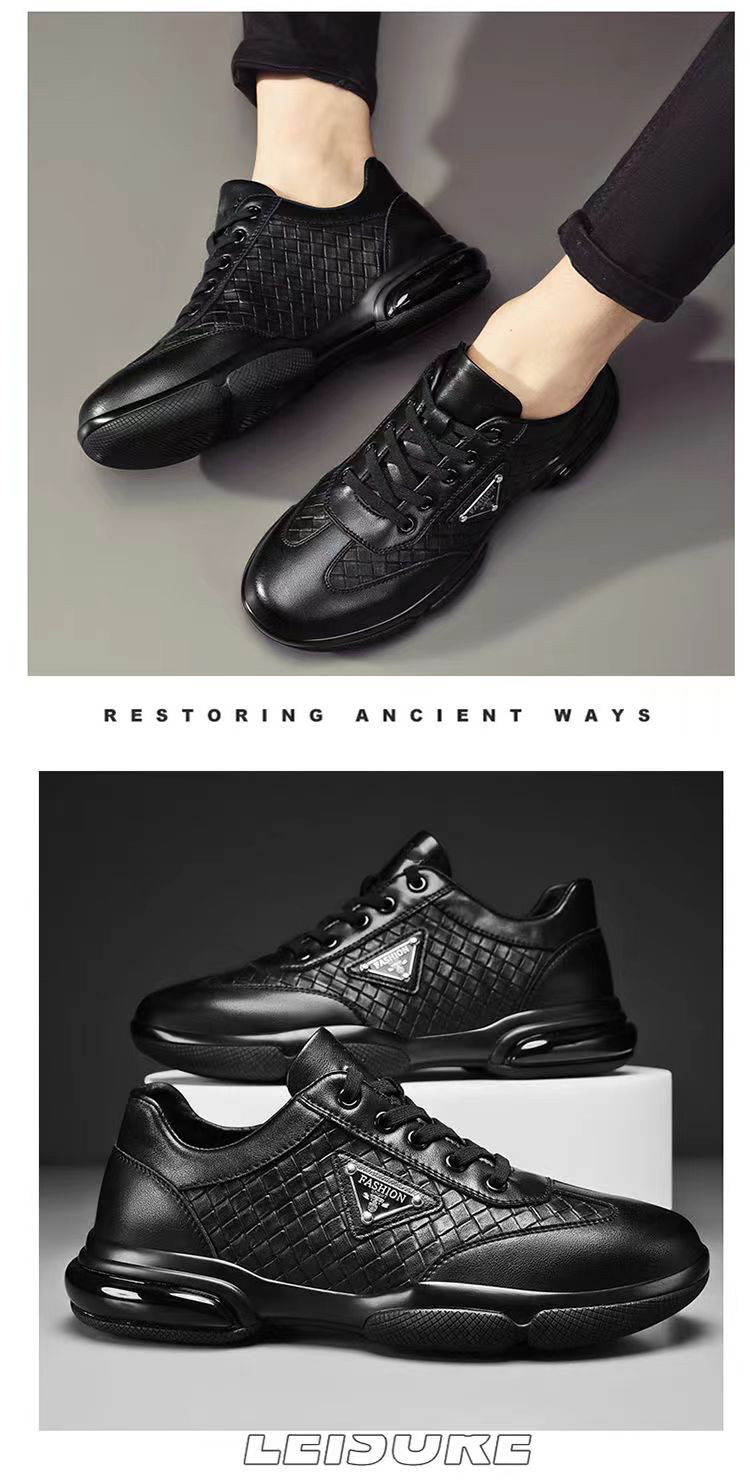 운동화 남자의 새로운 통기성 가죽 남성 신발 트렌디 한 다용도 캐주얼 신발 로우 탑 레이스 업 블랙 작업 신발스토어 가기
