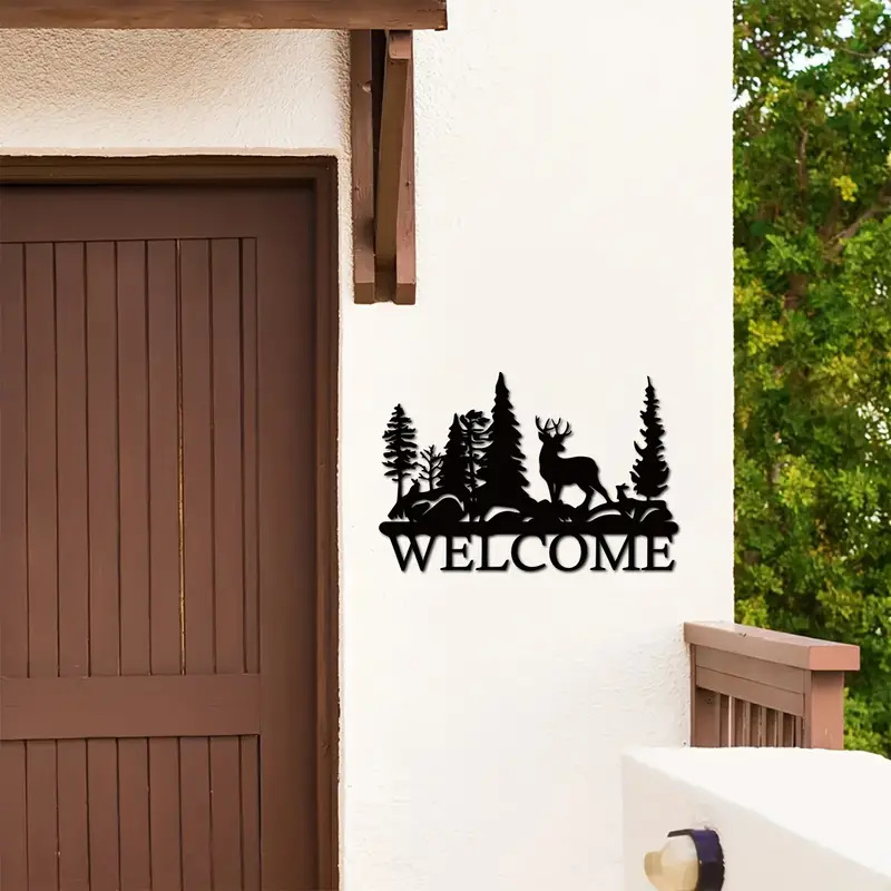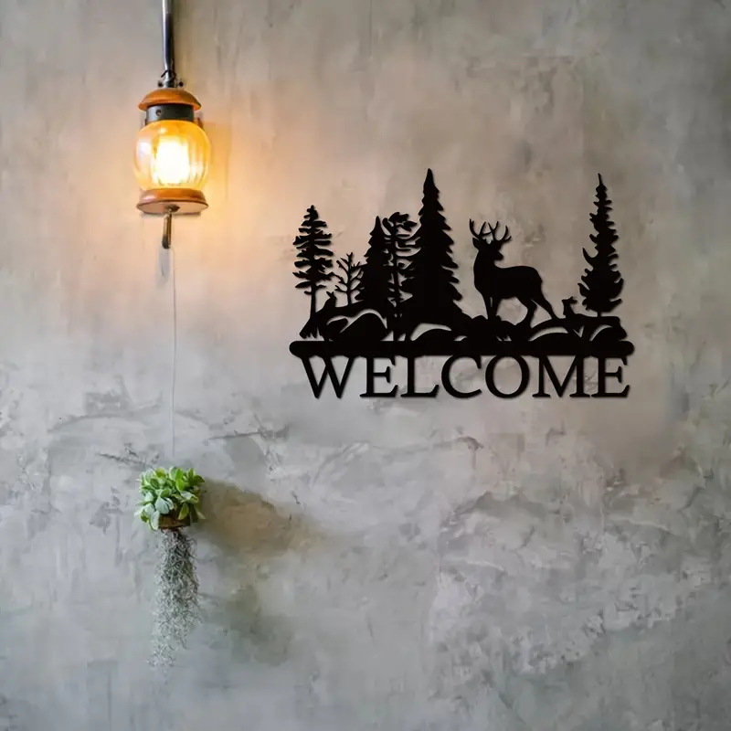 국경 금속 사슴 환영 기호/큰 자연 장식/나무와 사슴 입구 문 기호/독특한 가정 장식스토어 가기