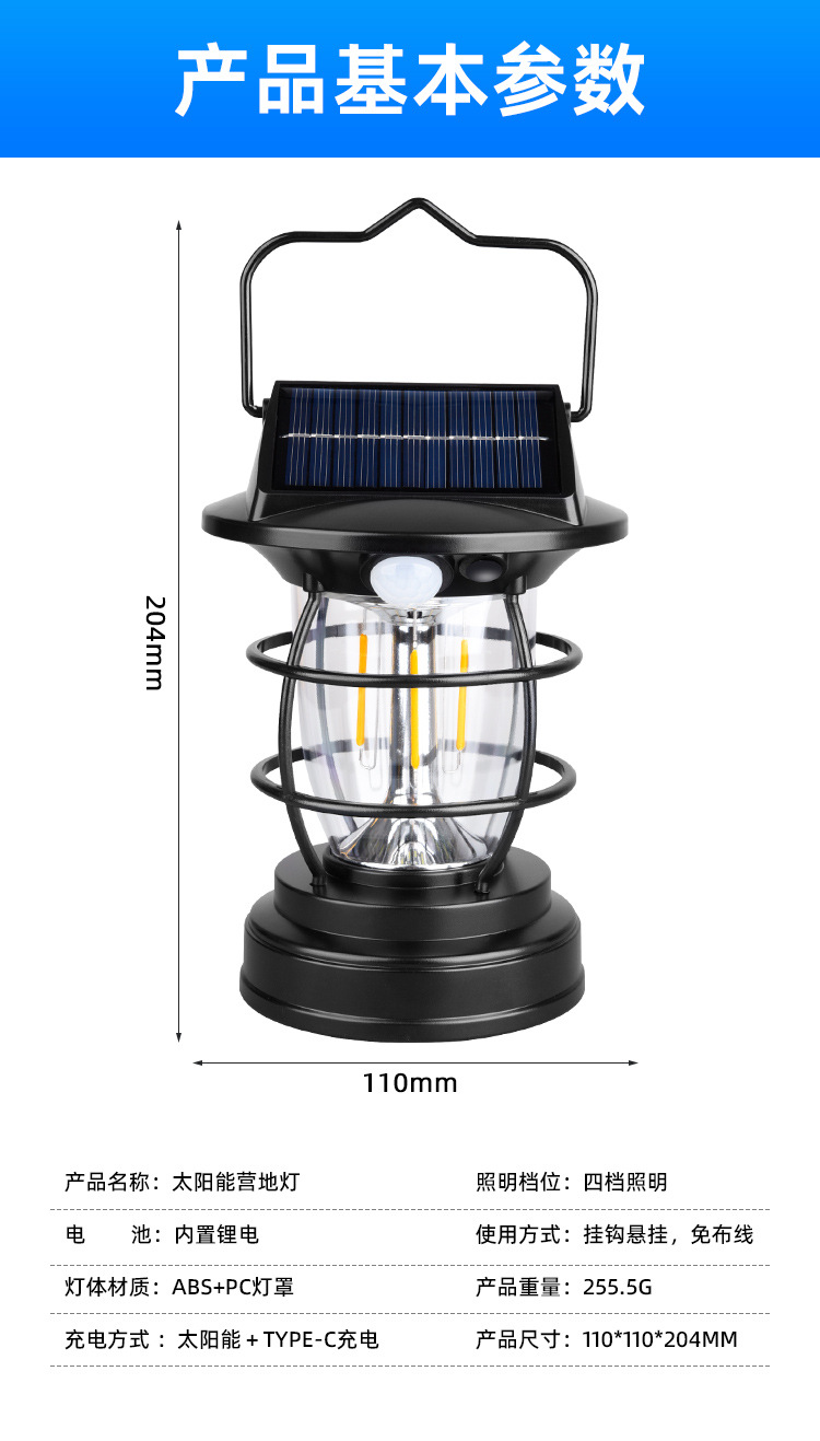 태양 야외 캠핑 램프 슈퍼 긴 지구력 캠핑 랜턴 조명 캠핑 충전식 휴대용 램프 캠프 텐트 램프