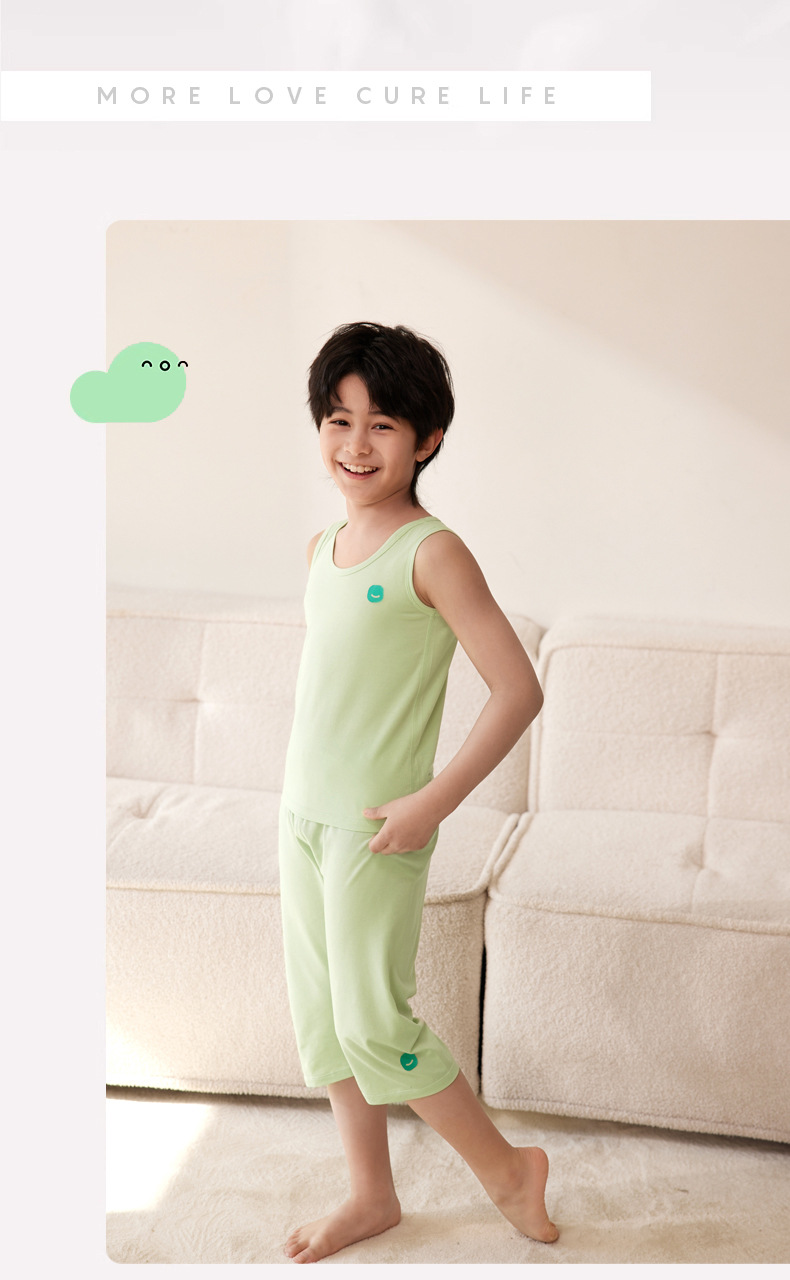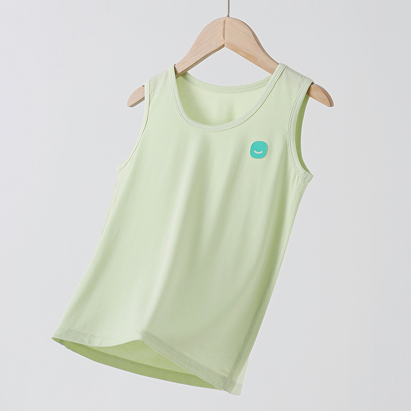 Lanjing Tencel Lyocell 어린이 조끼 클래스 소년 소녀를위한 면소매 티셔츠 봄과 여름 얇은 기지