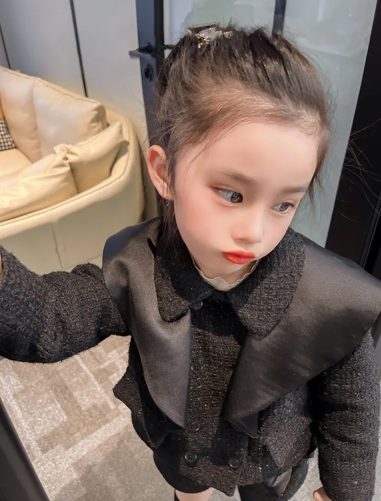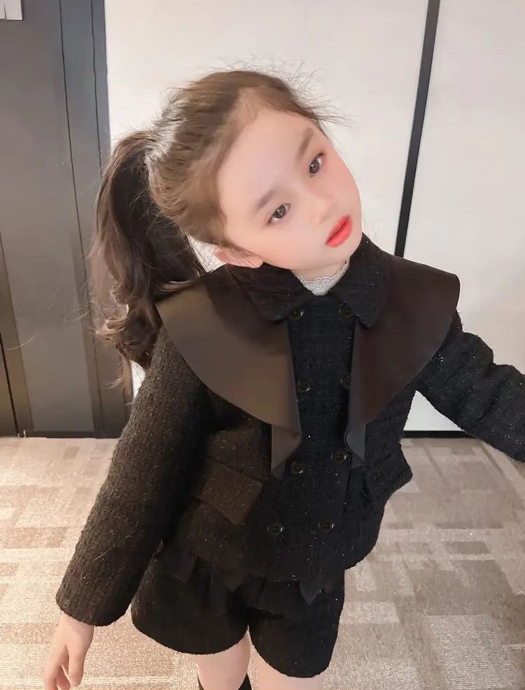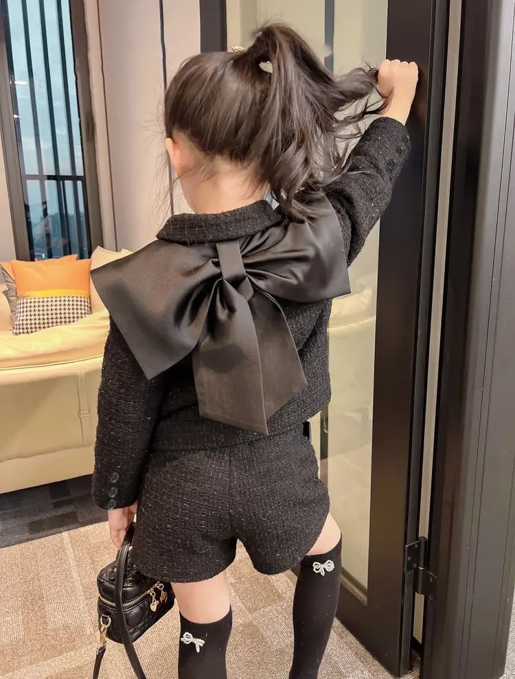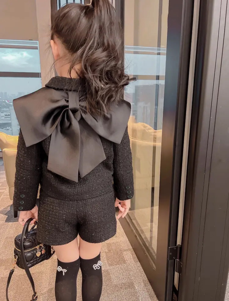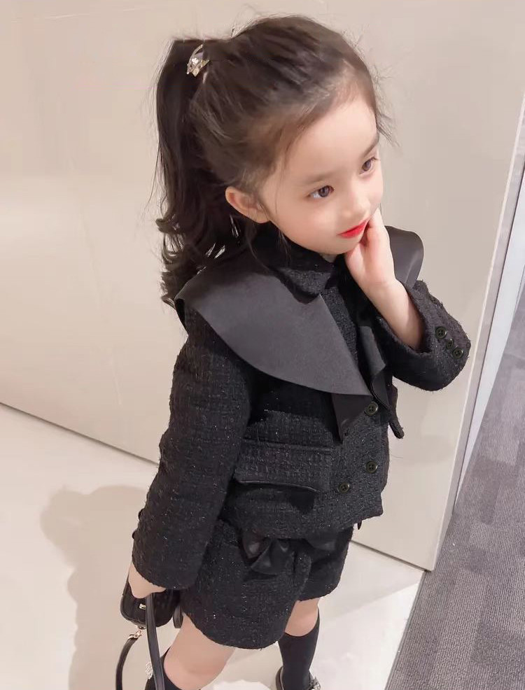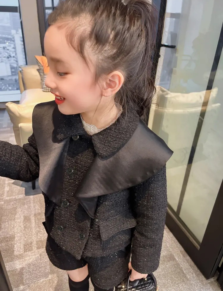 여아 정장 세트, 세련된 봄 가을 의류, 2025년 신상, 아동용 샤넬 스타일 긴팔 재킷과 반바지, 여아 투피스 세트