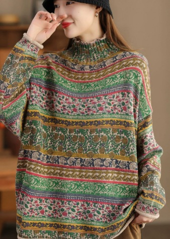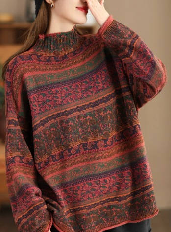 봄 새로운 복고풍 튀긴 색 스웨터 여성의 느슨한 반 터틀넥 긴 소매 면실 풀오버 스웨터