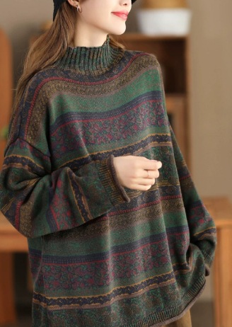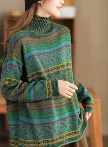 봄 새로운 복고풍 튀긴 색 스웨터 여성의 느슨한 반 터틀넥 긴 소매 면실 풀오버 스웨터스토어 가기
