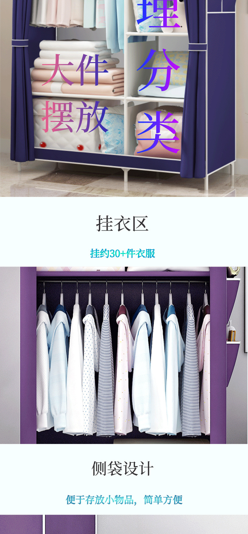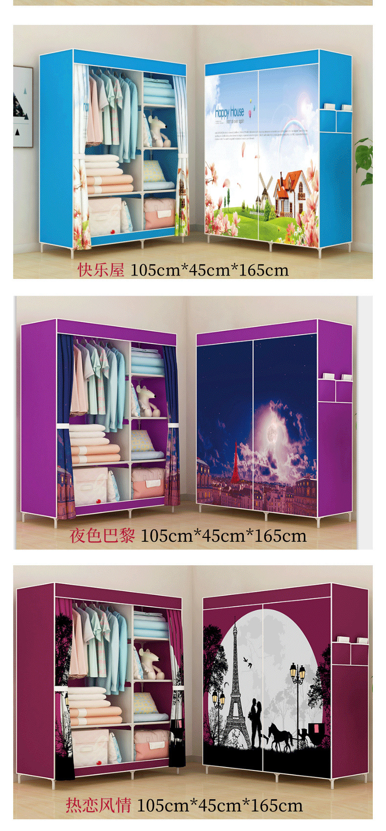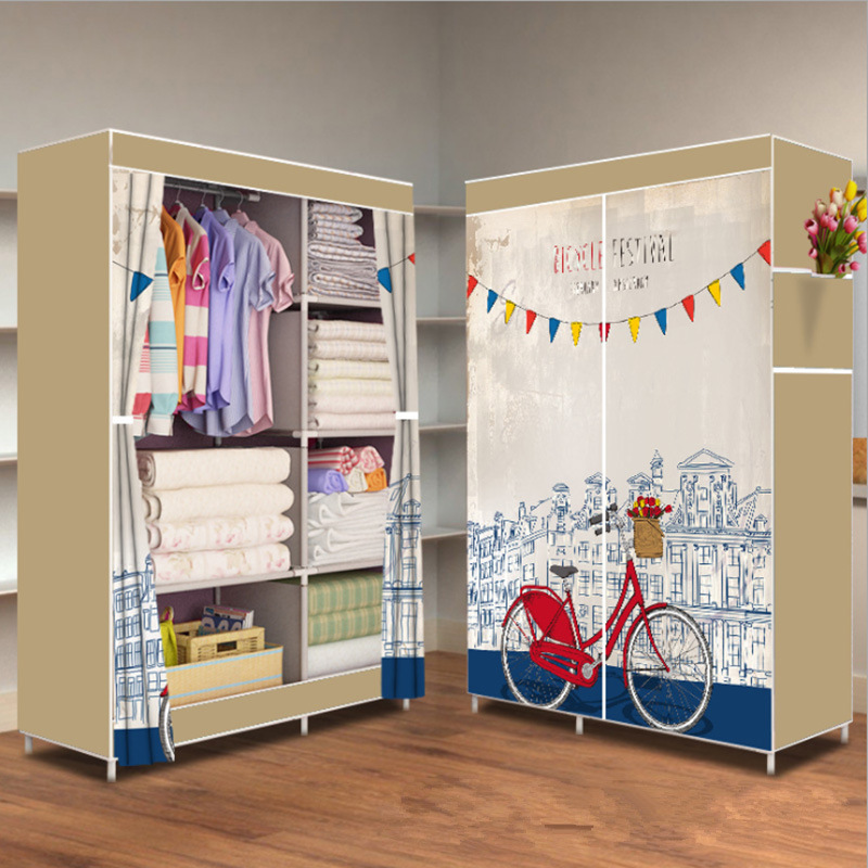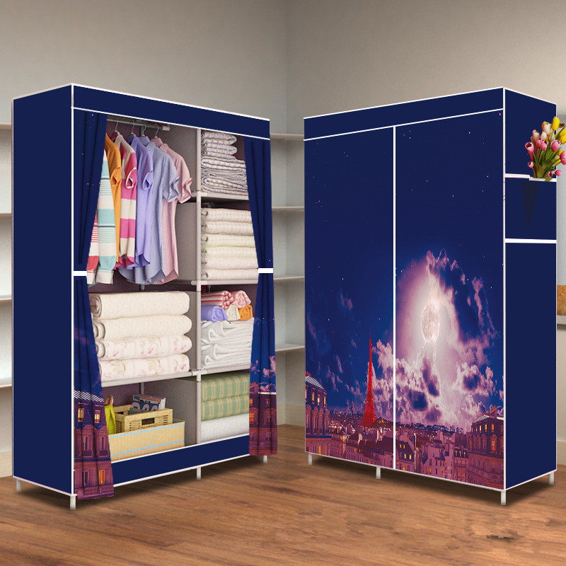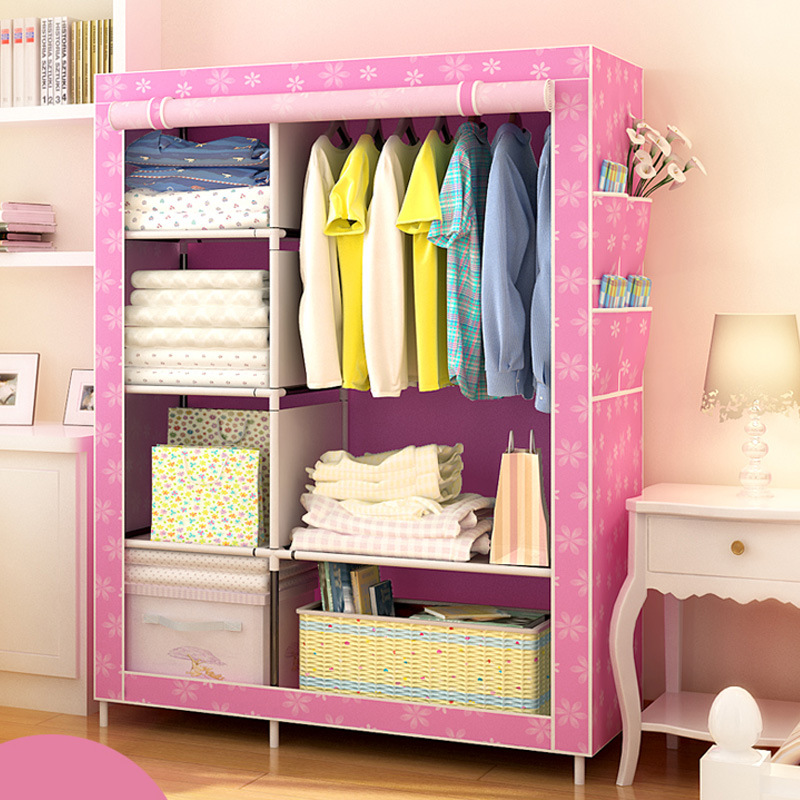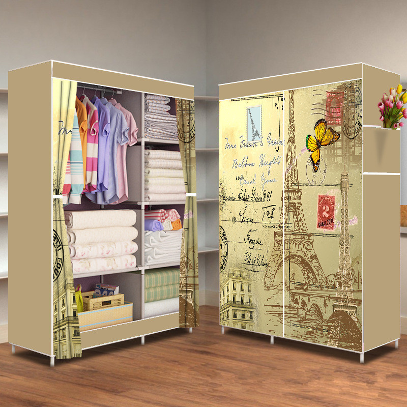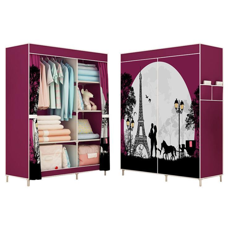 간단한 옷장 패션 부직포 방진 보관 옷장 옷걸이 강철 프레임 접이식 경제적 인 저장 캐비닛