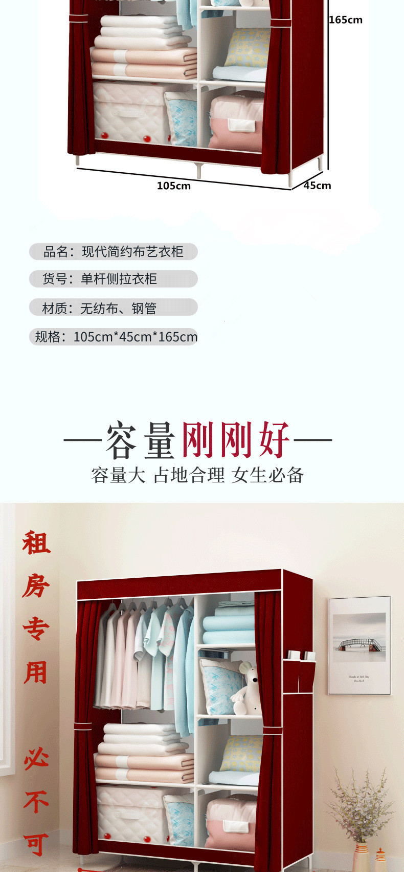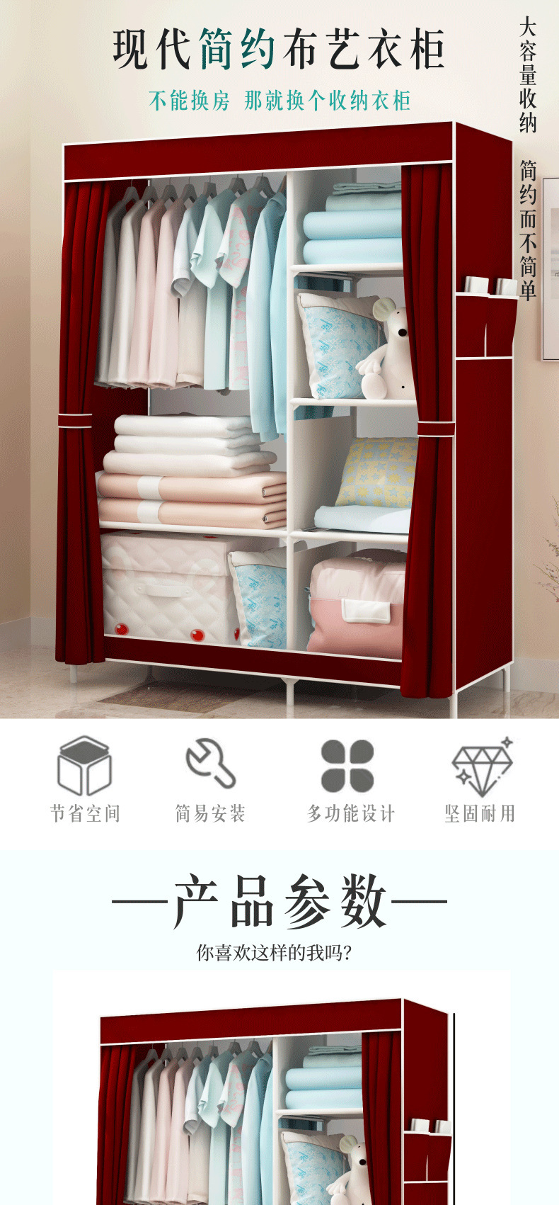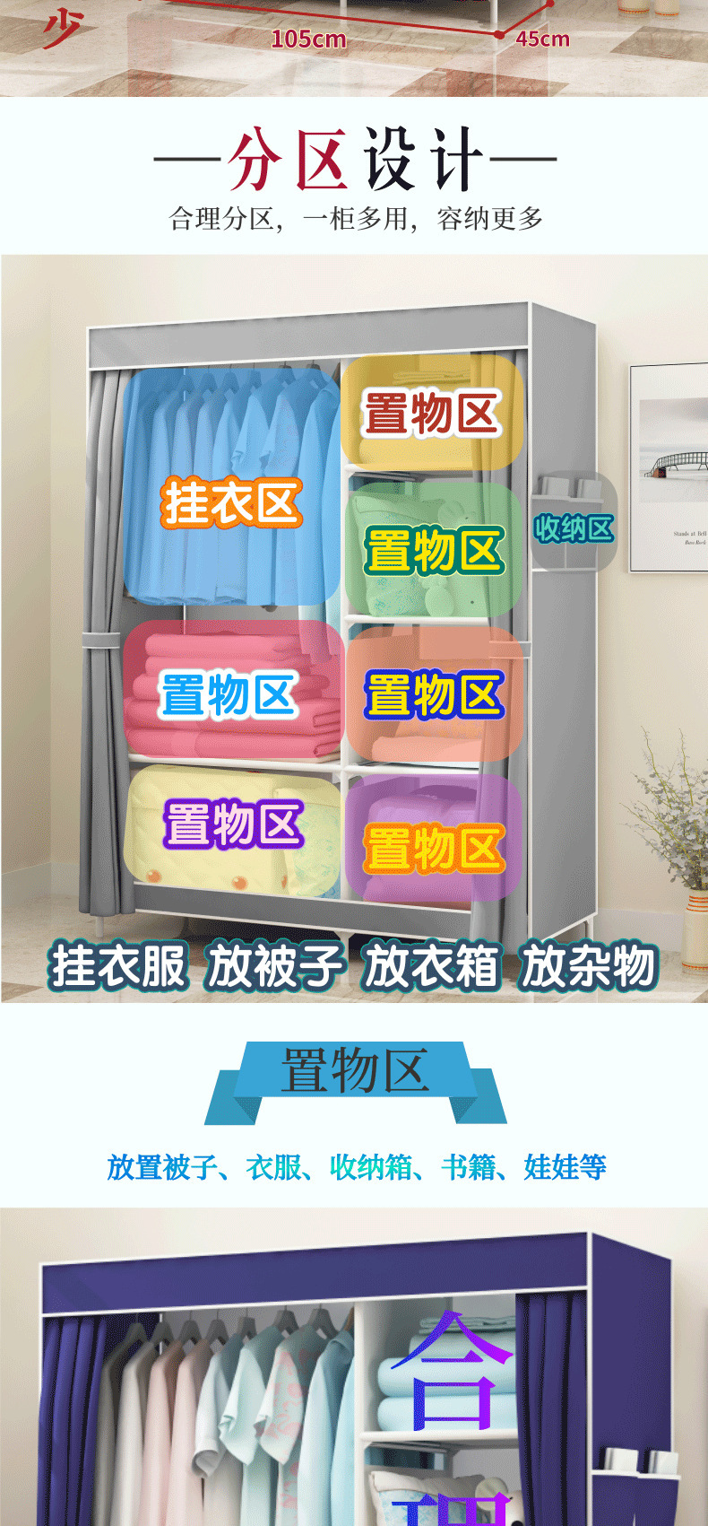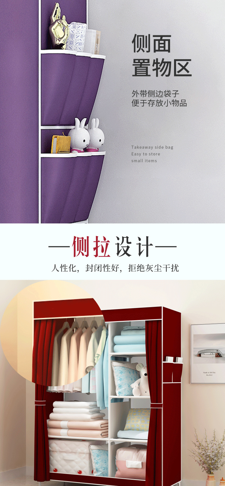 간단한 옷장 패션 부직포 방진 보관 옷장 옷걸이 강철 프레임 접이식 경제적 인 저장 캐비닛