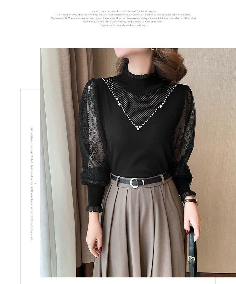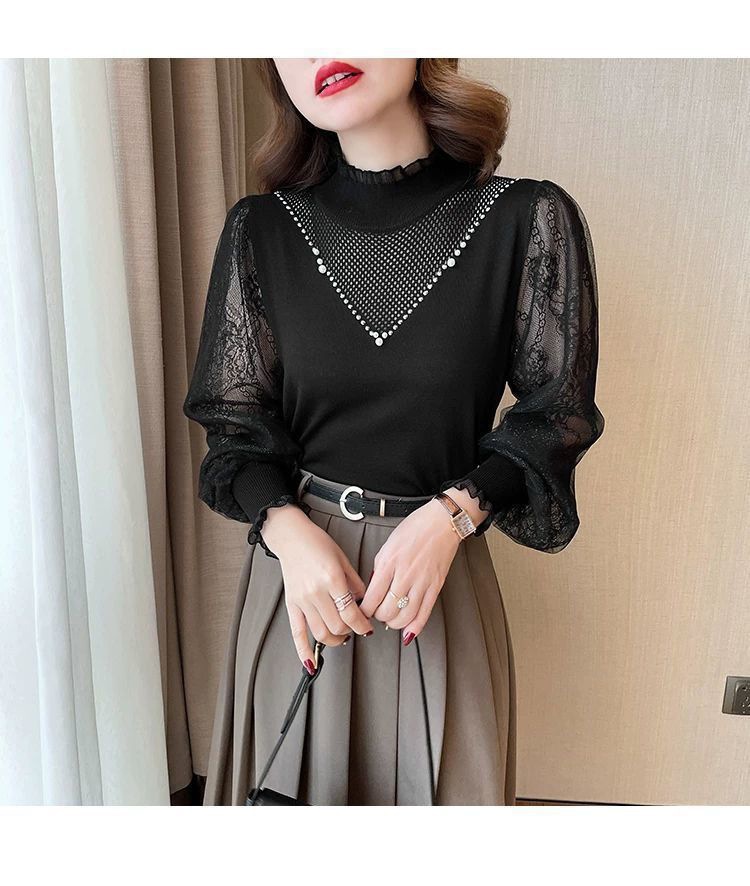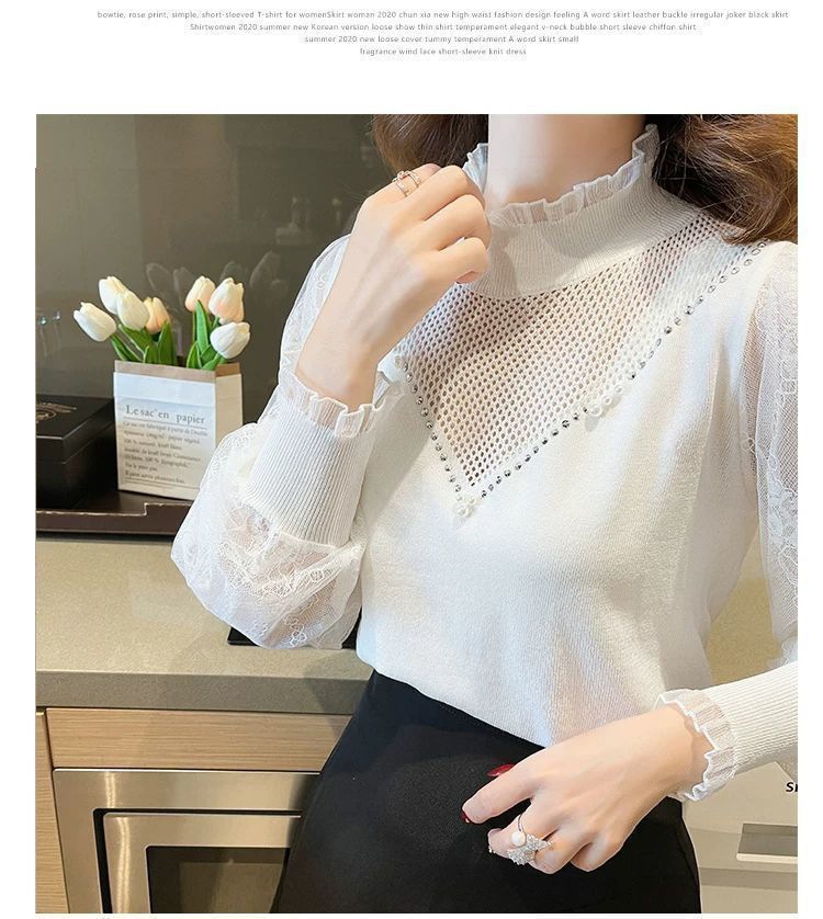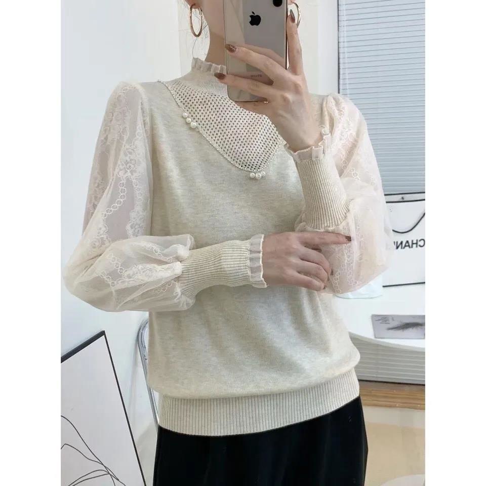 여성 레이스 스티칭 스웨터 2023 봄 새로운 중공 레이스 신중한 기계 기질 느슨한 바닥 상단스토어 가기