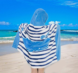 아마존 비치 타올 유럽과 미국 스타일의 마이크로 화이버 어린이 웨어러블 폴리 에스테르면 흡수성 빠른 건조 후드 목욕 타월 망토
