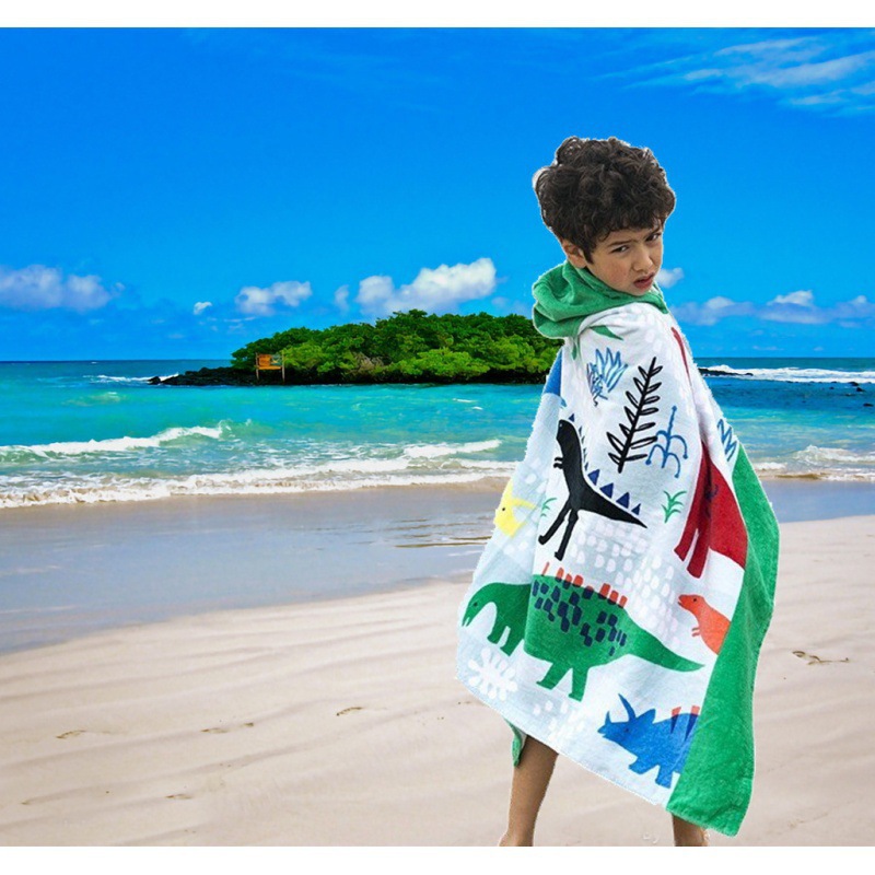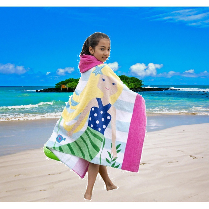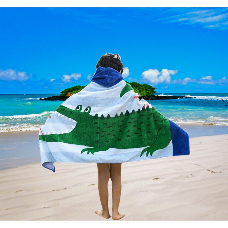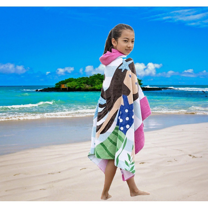 아마존 비치 타올 유럽과 미국 스타일의 마이크로 화이버 어린이 웨어러블 폴리 에스테르면 흡수성 빠른 건조 후드 목욕 타월 망토스토어 가기