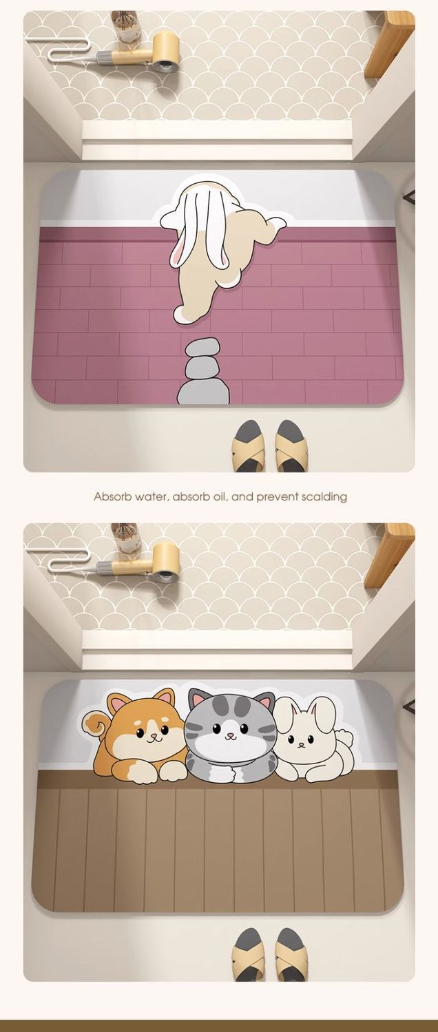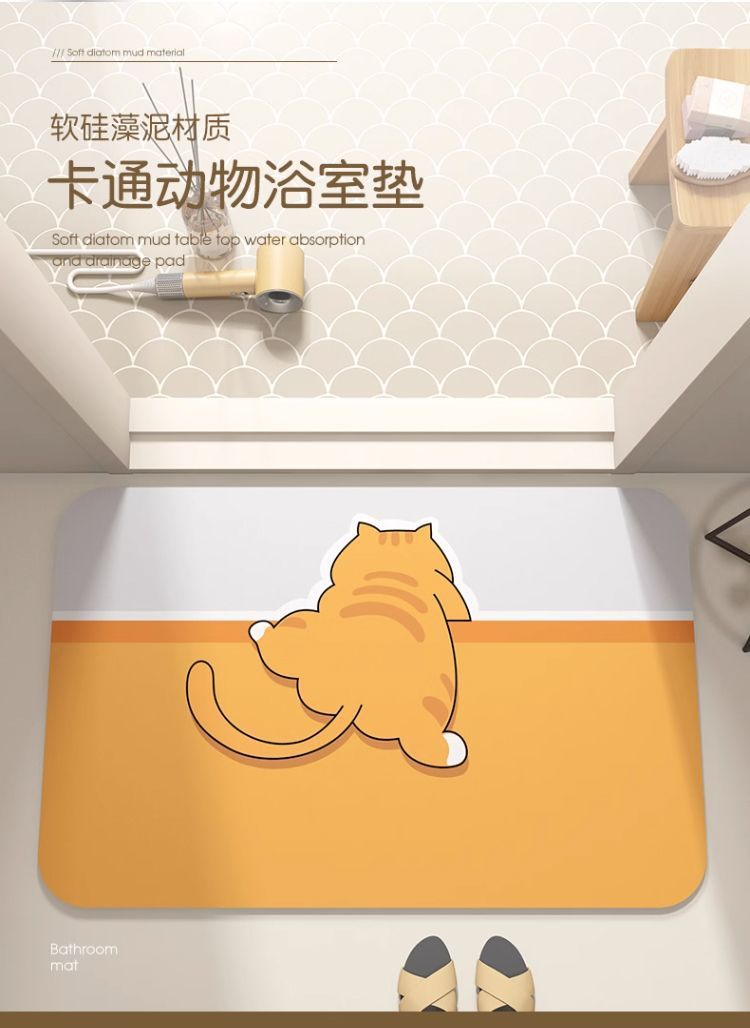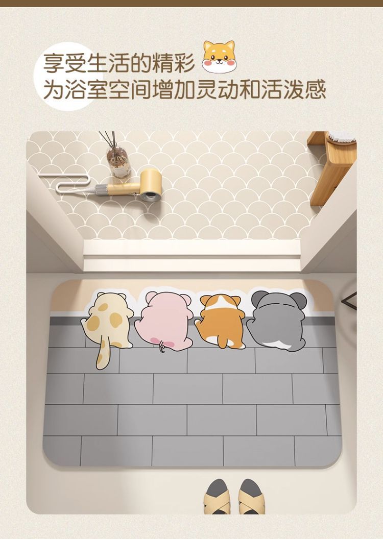 Diatom 진흙 바닥 매트 만화 욕실 문 흡수성 빠른 건조 바닥 매트 가정용 미끄럼 방지 얼룩 방지 내마모성 바닥 매트스토어 가기