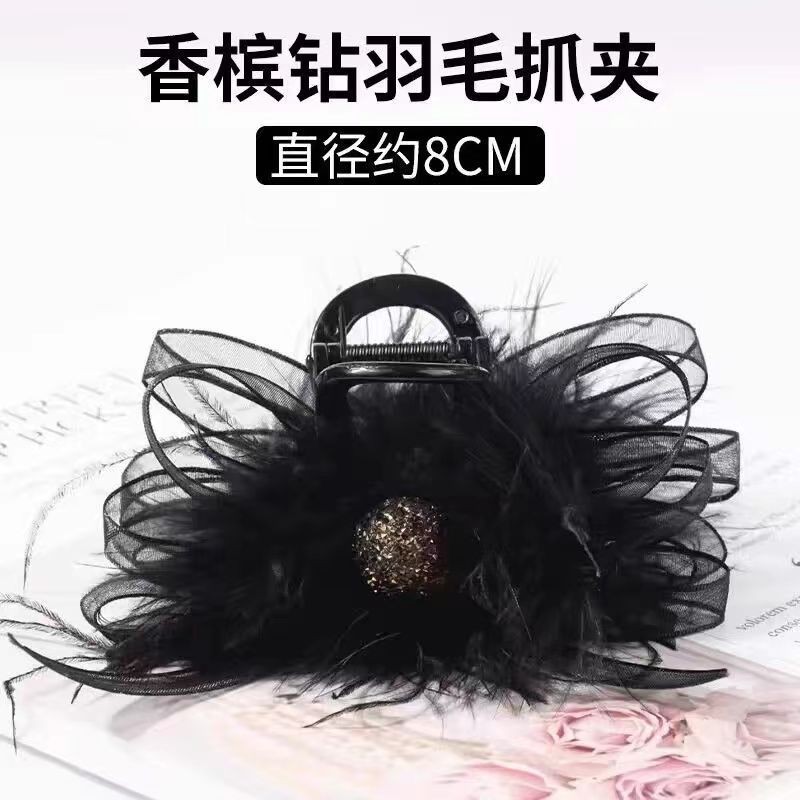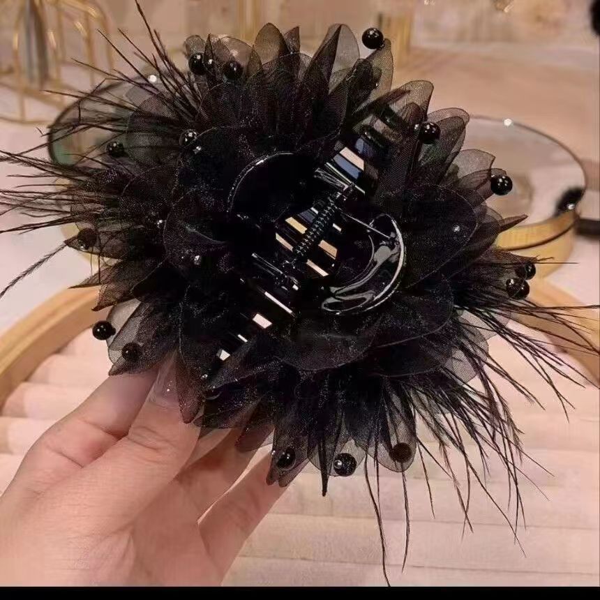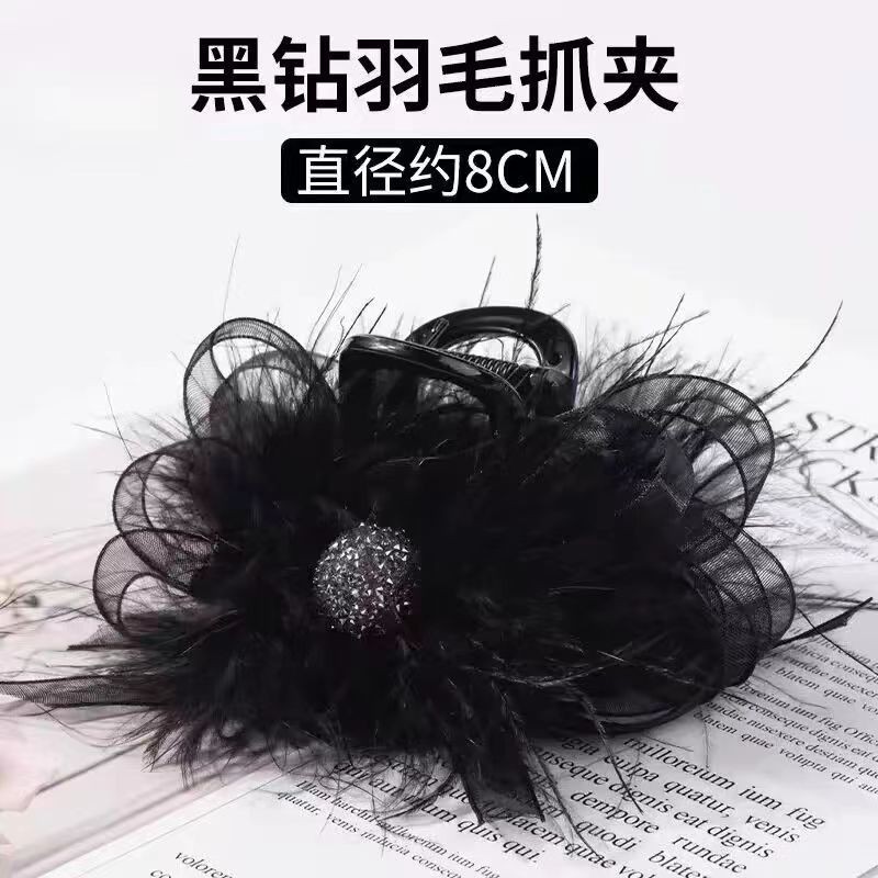 • 검은 모란 깃털 캐치 클립 "13cm]