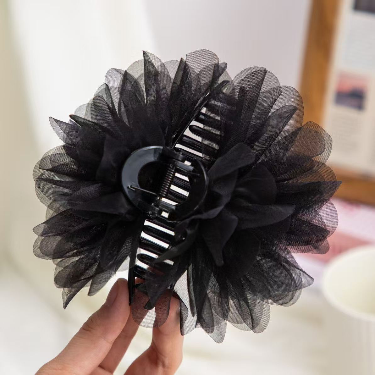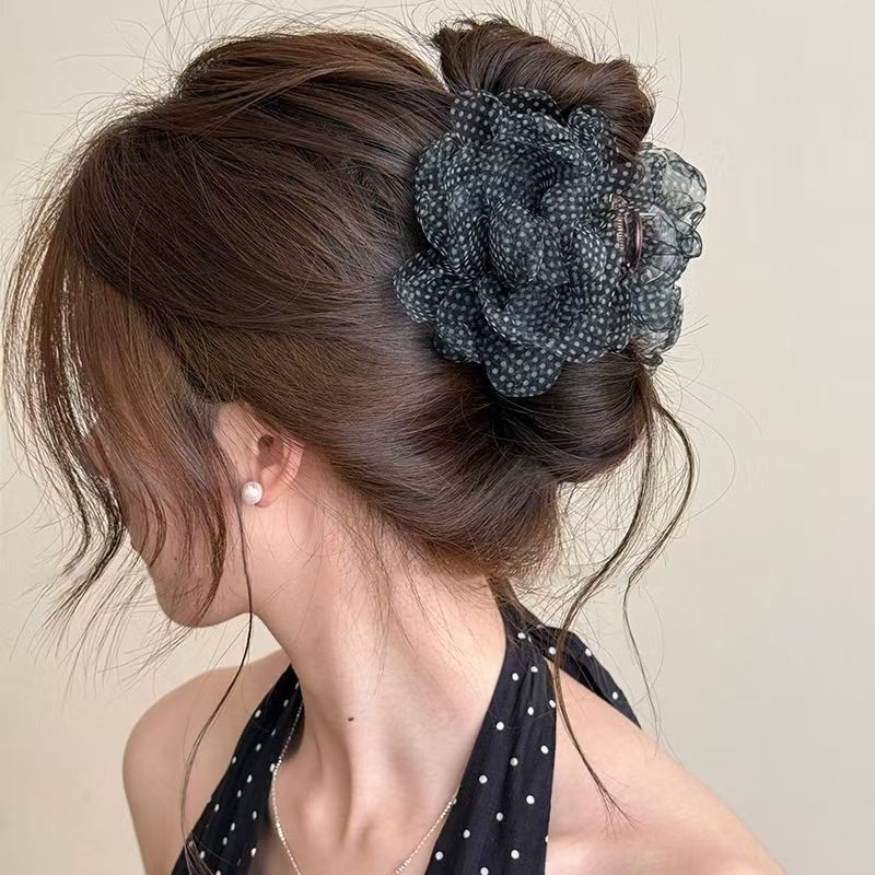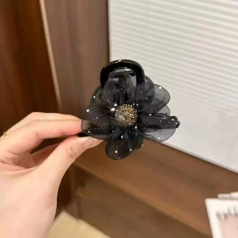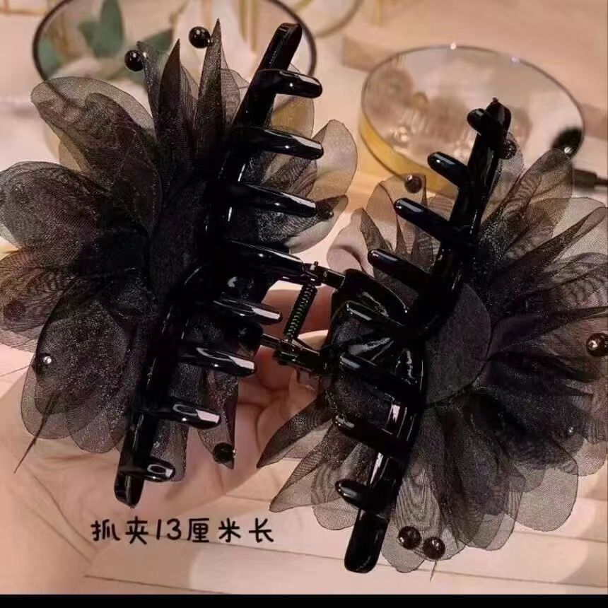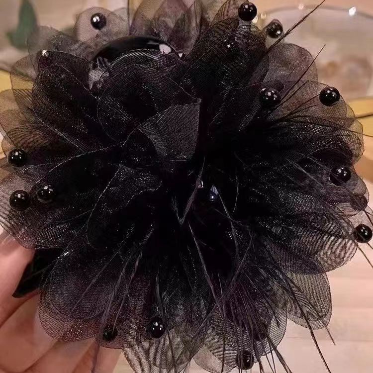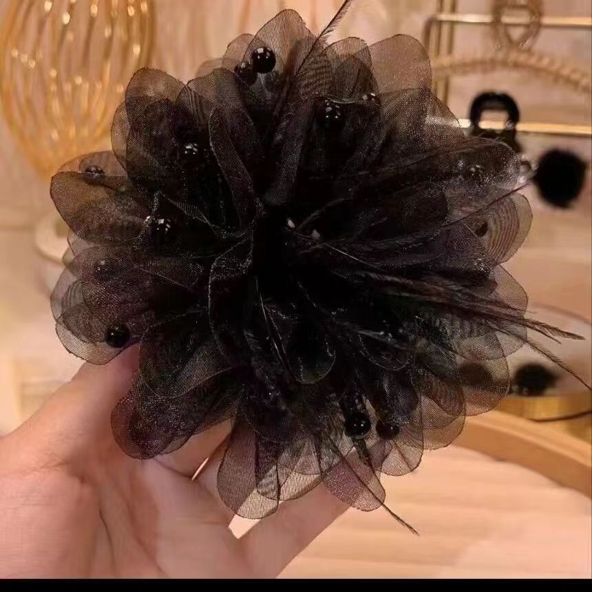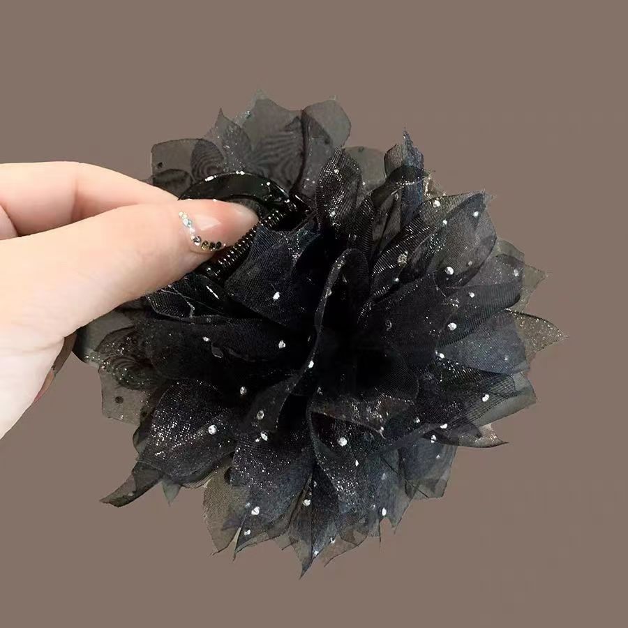 • 로즈 플라워 집게핀 7cm 블랙