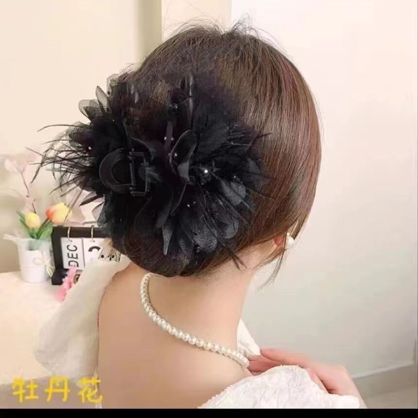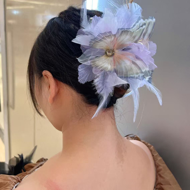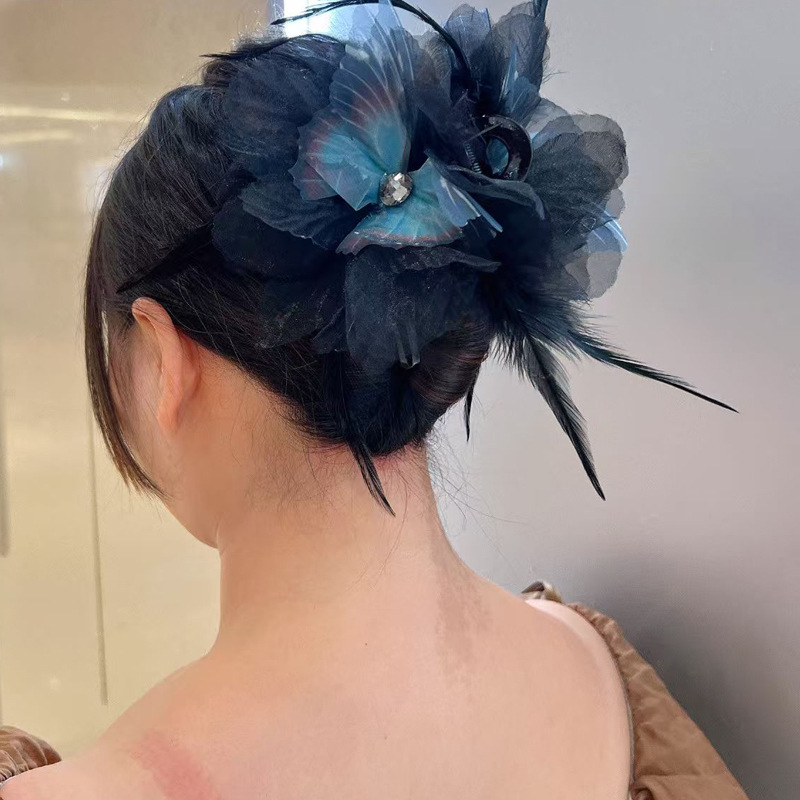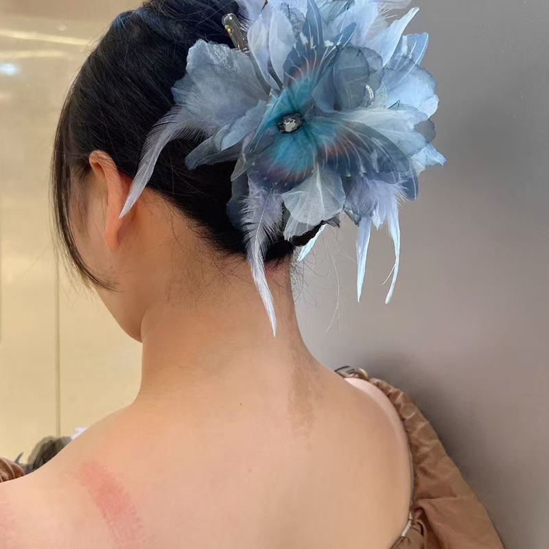 새로운 모란 깃털 그물 빨간색 높은 찾고 가벼운 고급 패션 머리 상어 서양식 머리핀 최고 등급스토어 가기