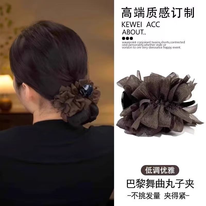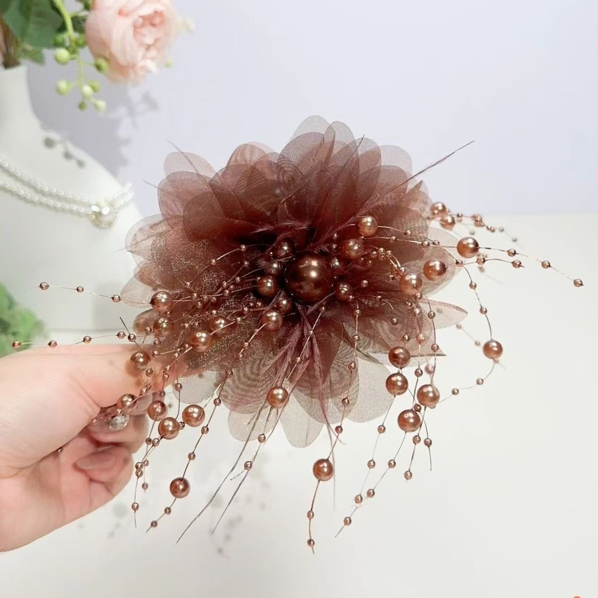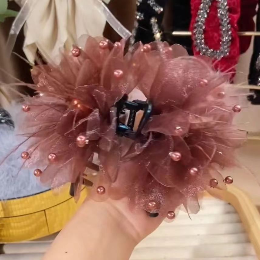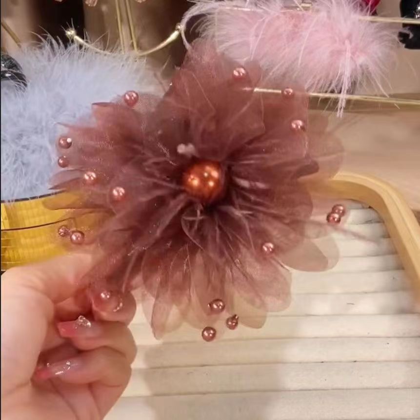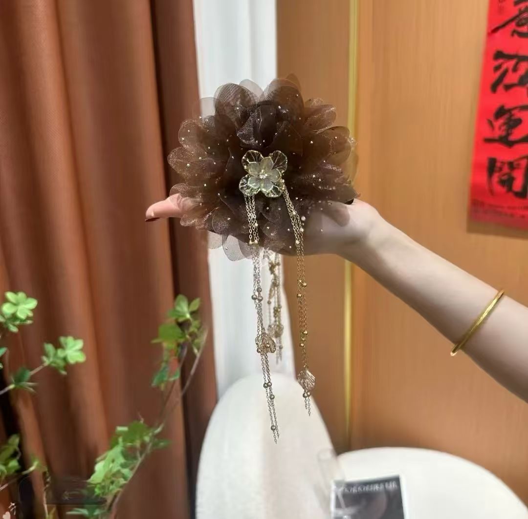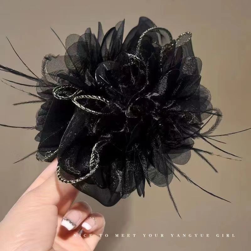 • 다크 브라운 모란 꽃 깃털 캐치 클립 [13cm]