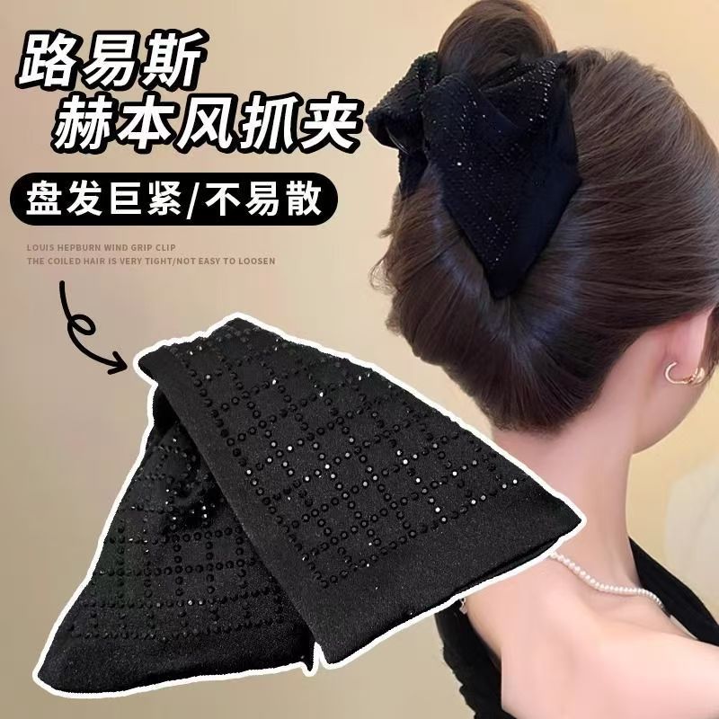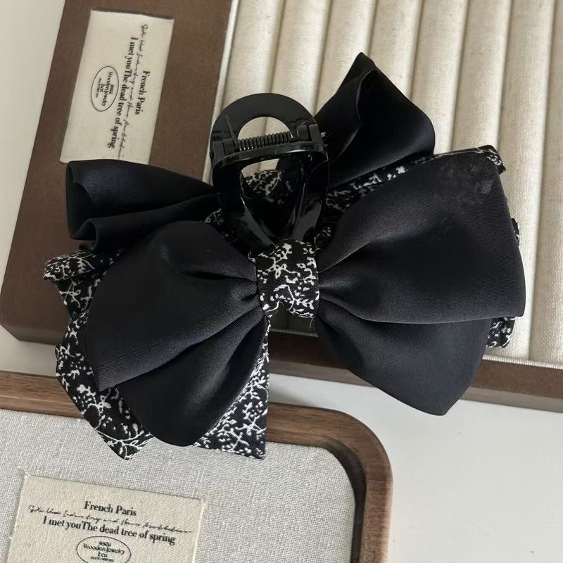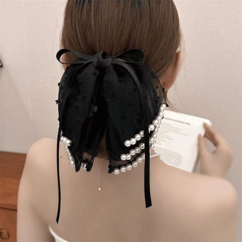 • 3겹 보우 펄 포니테일 클립 블랙