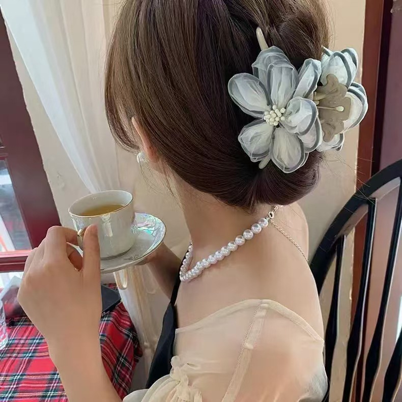 • 주름 장식 플라워 집게핀