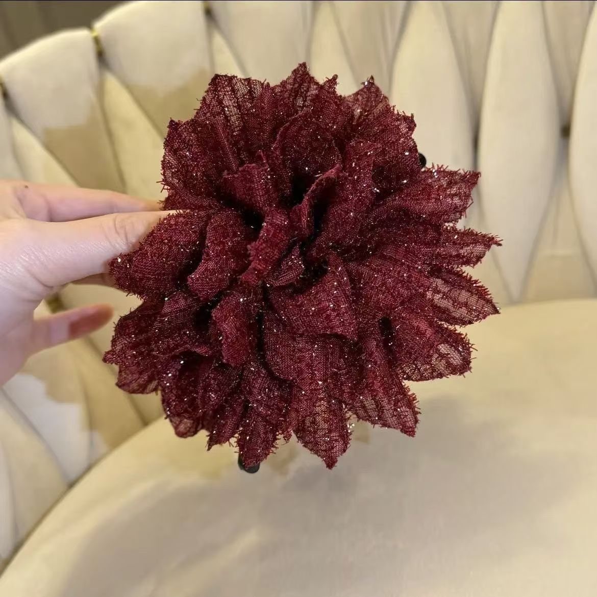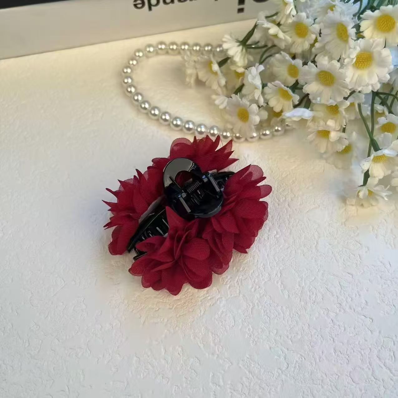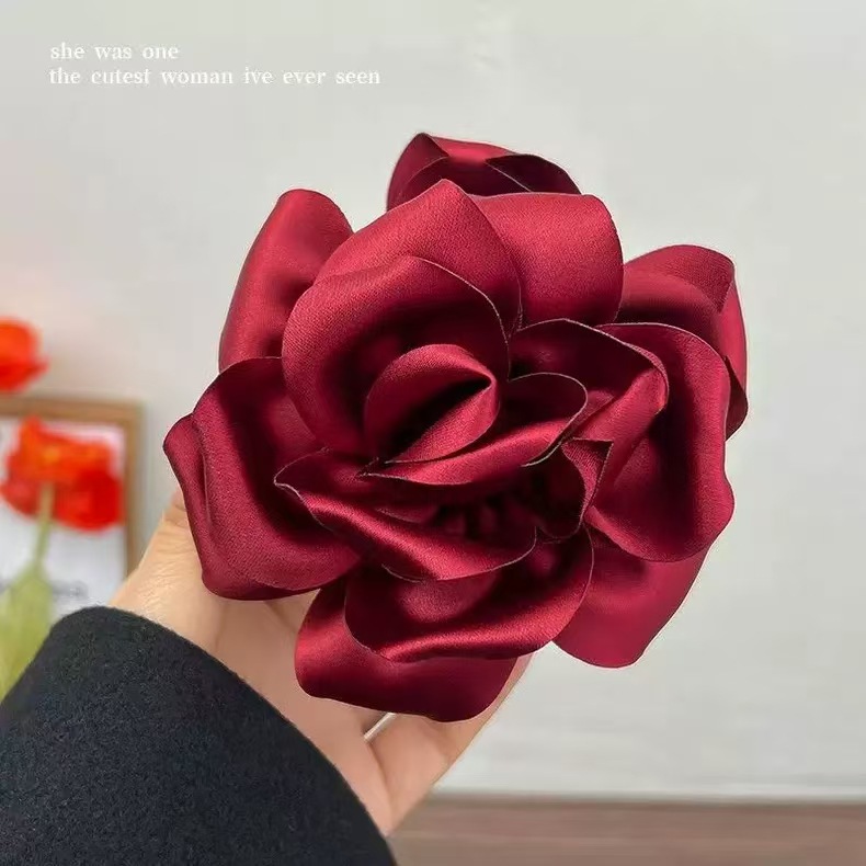 • 새틴 로즈 플라워 클립 [버건디]
