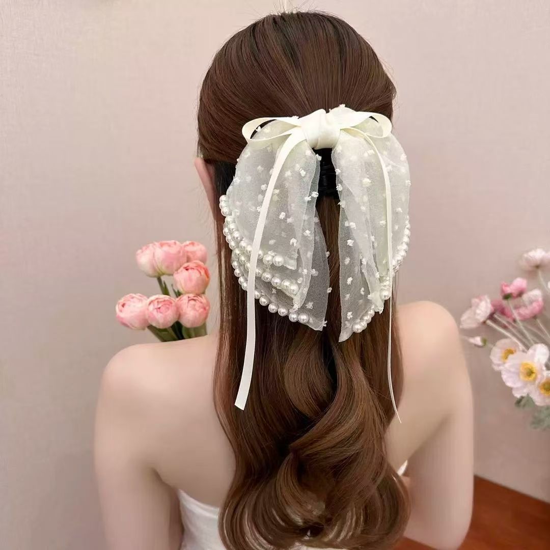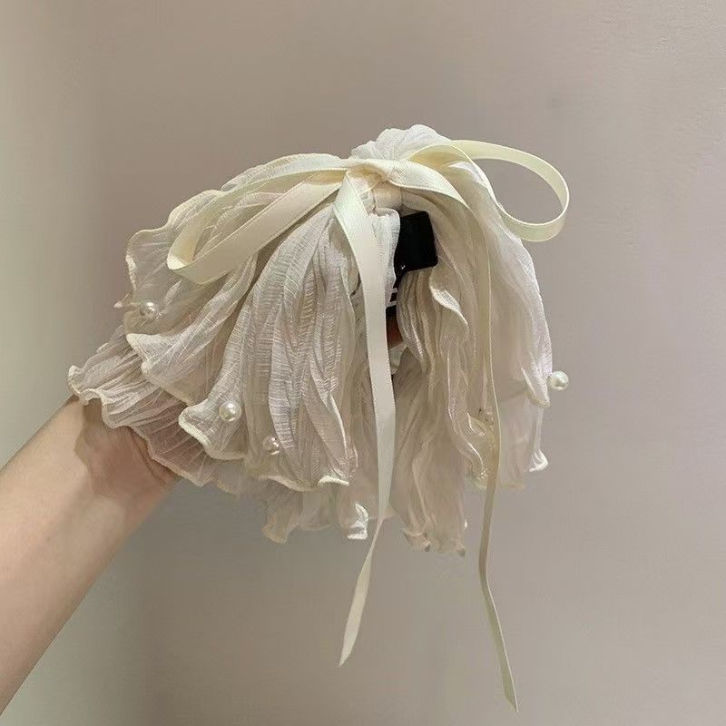 • 3겹 보우 펄 포니테일 클립 화이트