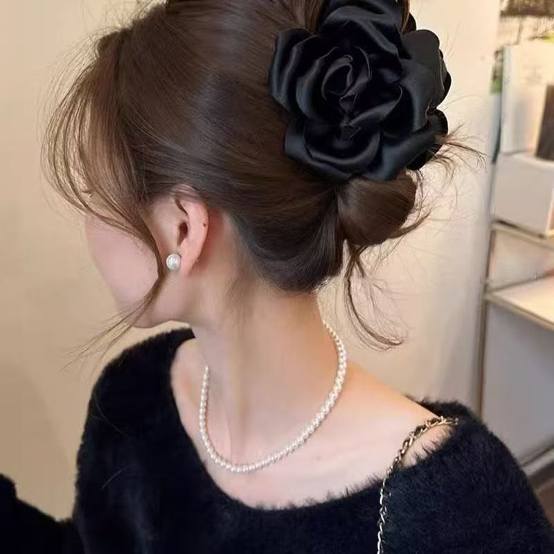 • 새틴 로즈 클립 [블랙]