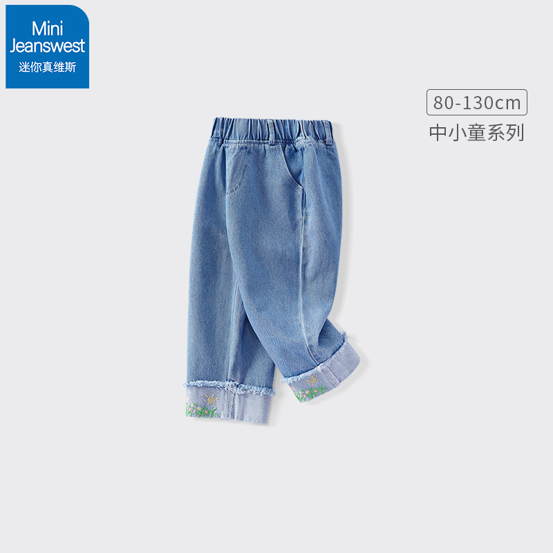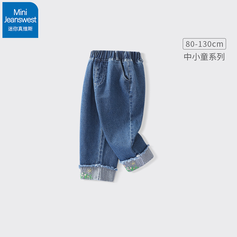 아동복 여아 긴바지 봄 가을 2025 자수 밑단 커프스 청바지 중소형 아동 바지 다용도 트렌디 스트레이트핏