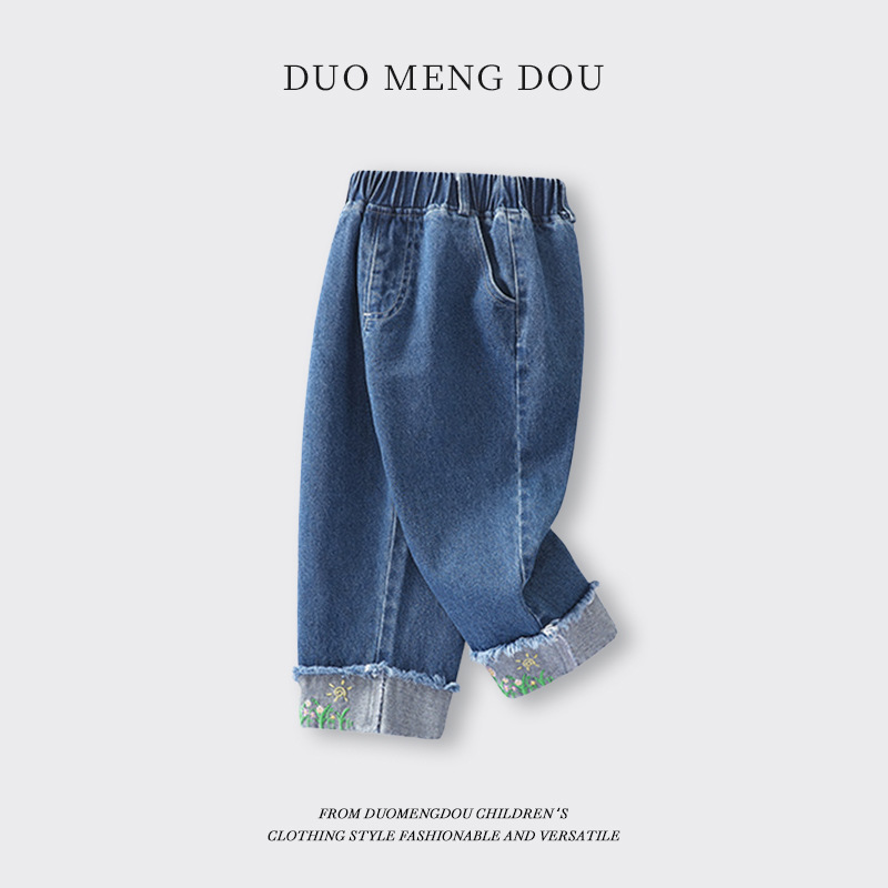 아동복 여아용 긴바지 봄 가을 2025 자수 러플 데님 팬츠 유아동 캐주얼 바지 다용도 트렌디
